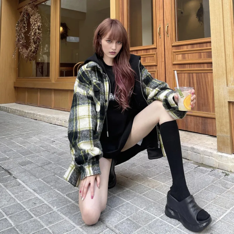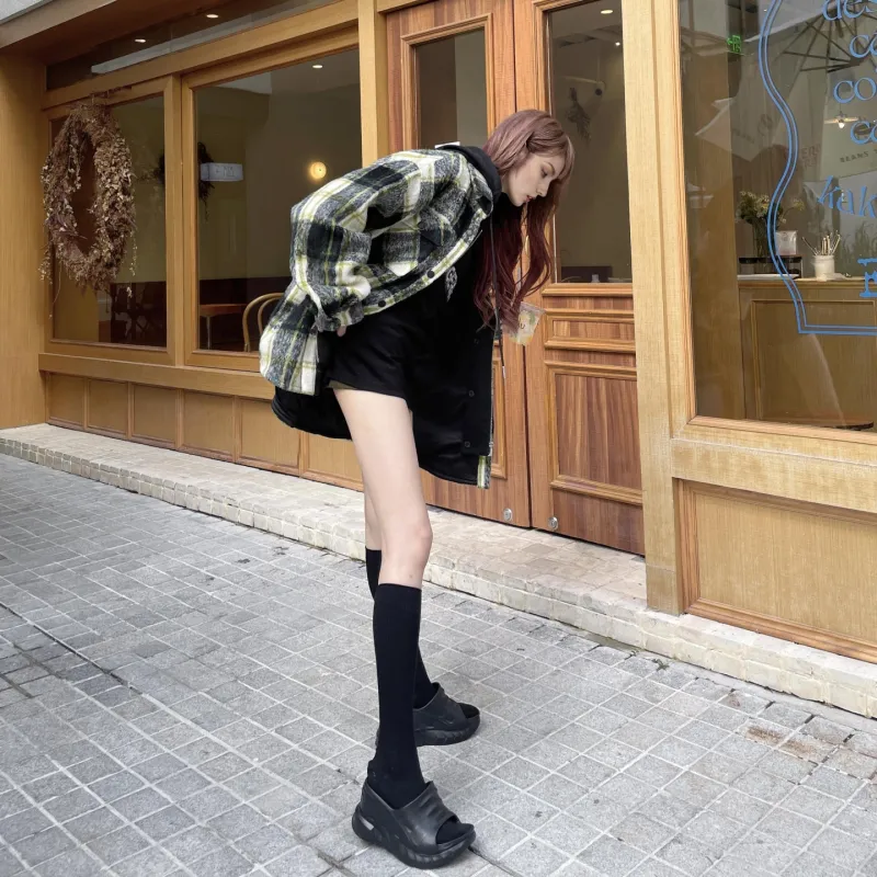 색상:블랙 옐로우 체크무늬