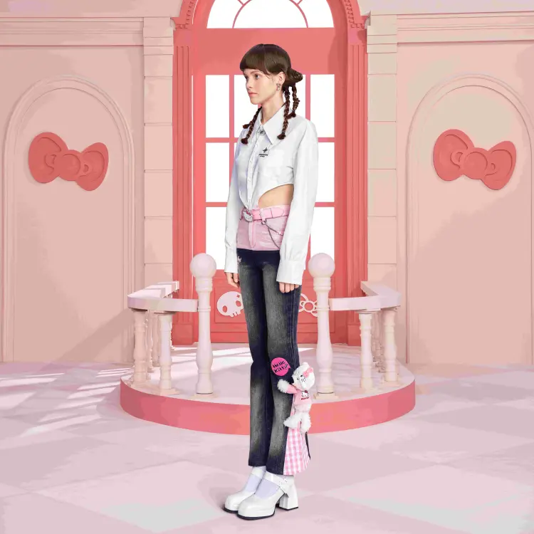13 DEMARZO 블랙 파우더 재봉선 여성 청바지 - POIZON