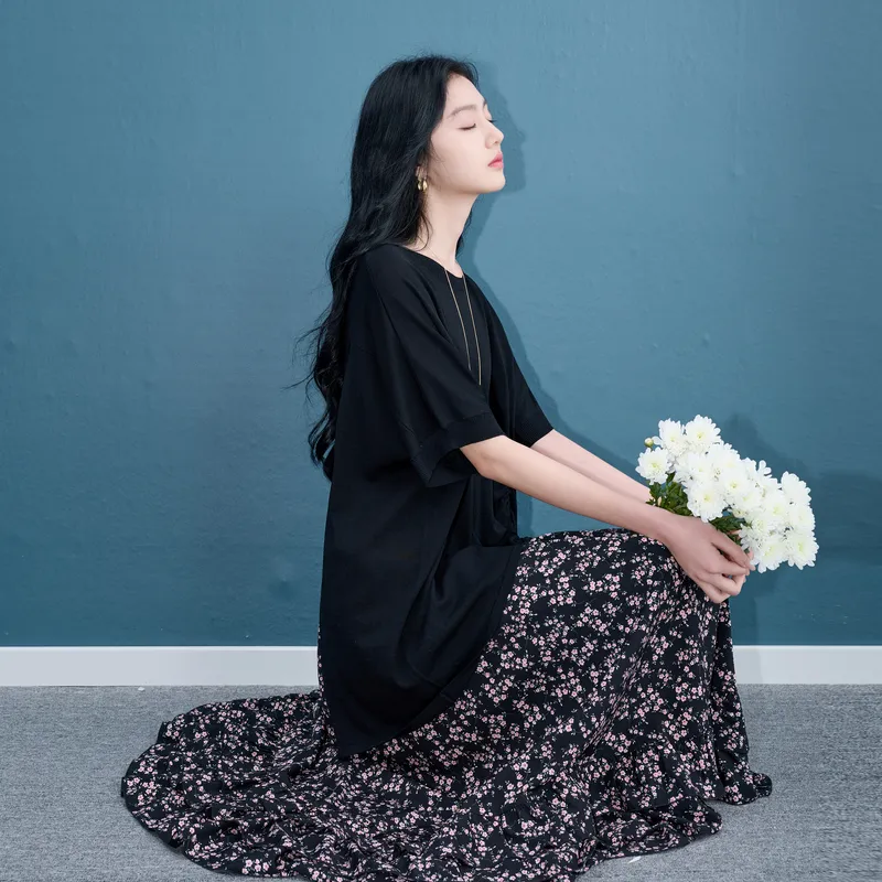 색상:의류 세트 (클래식 블랙 상의+스커트)