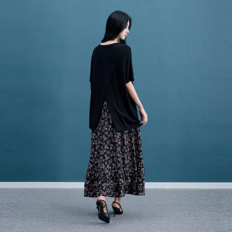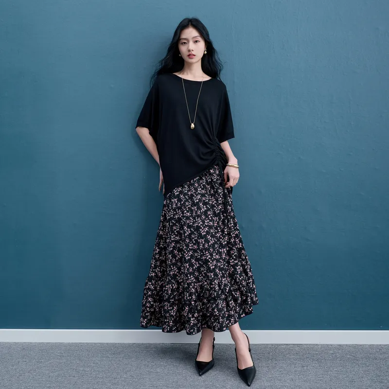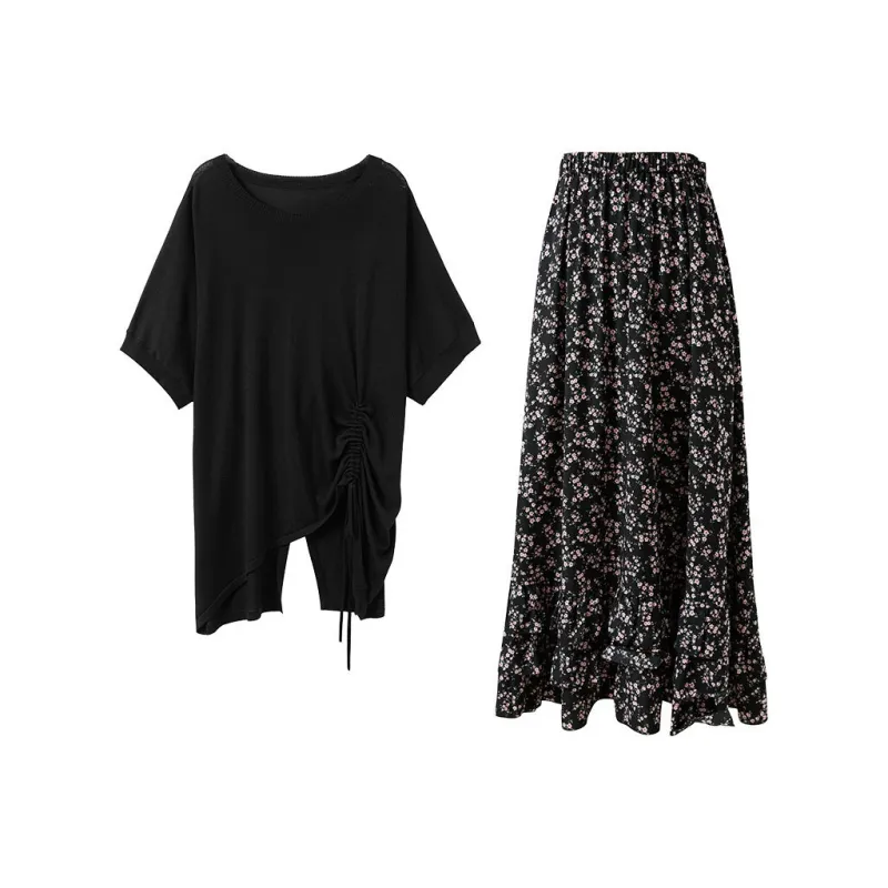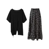 3COLOUR 의류 세트 클래식 블랙 상의+스커트 여성 캐주얼 슈트 - POIZON
