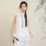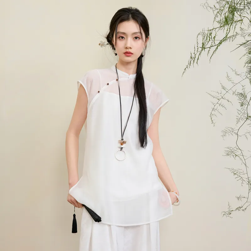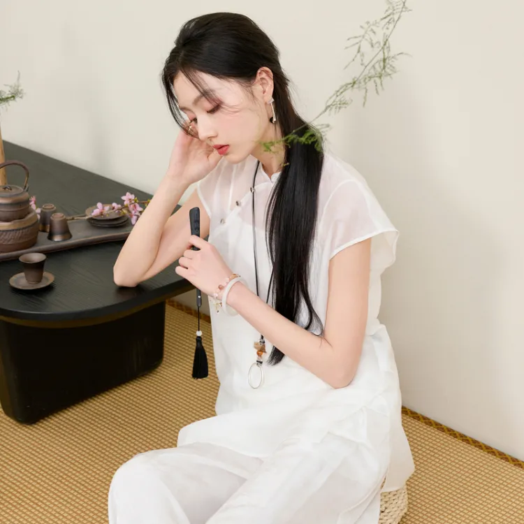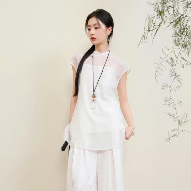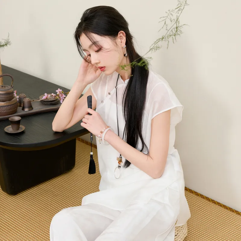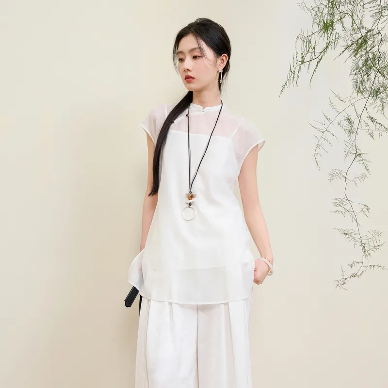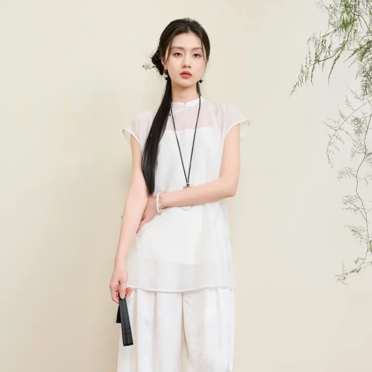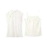 3COLOUR 의류 세트 펄 화이트 블라우스 + 캐미솔 여성 캐주얼 슈트 - POIZON