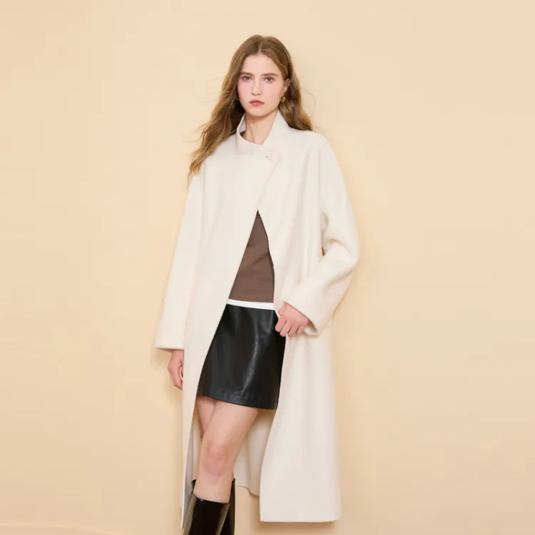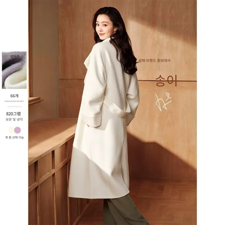 라이트 퍼플, 에크루 원단: 91.4% 양모, 8.6% 알파카 (연결 실 제외) 밀크 화이트 원단: 88.7% 양모, 11.3% 알파카 울 (연결 실 제외)