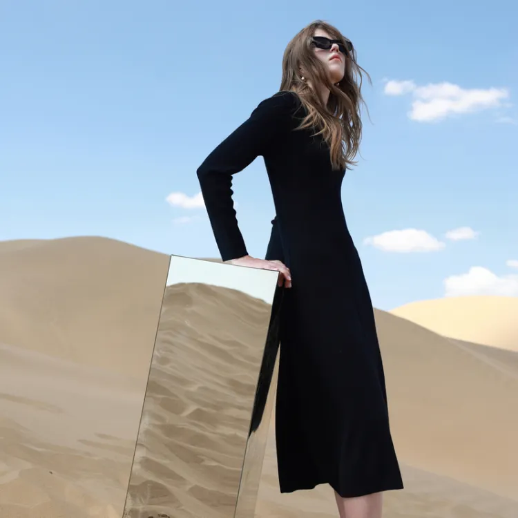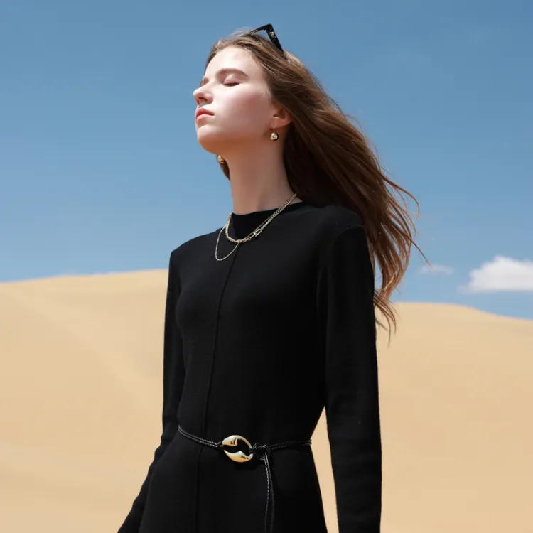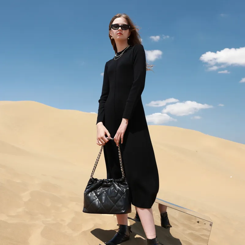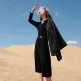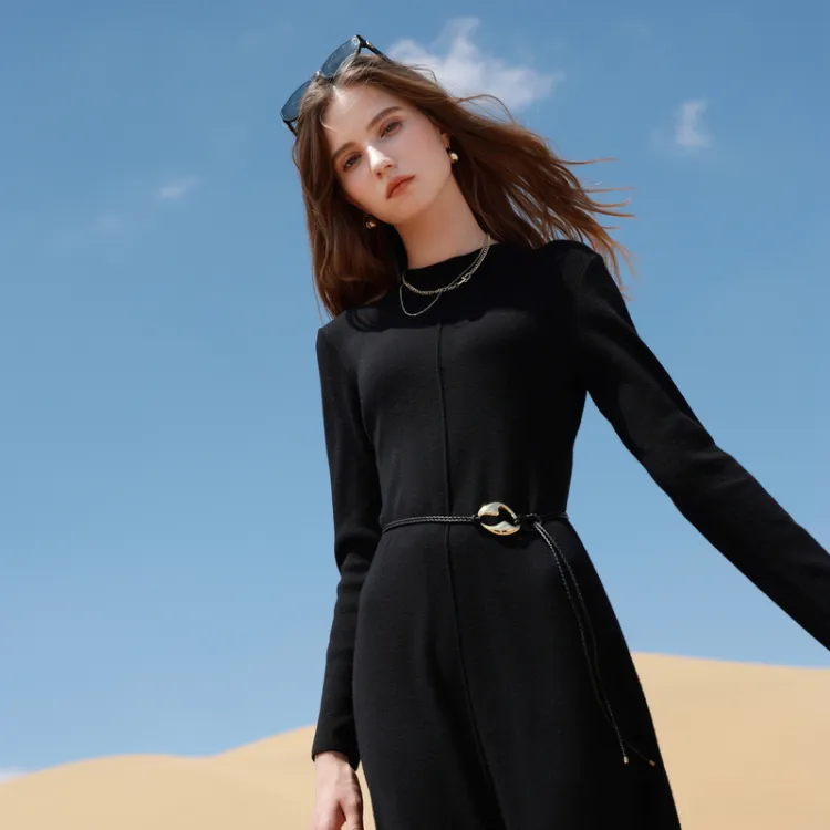 3COLOUR 클래식 블랙 여성 긴팔 원피스 - POIZON