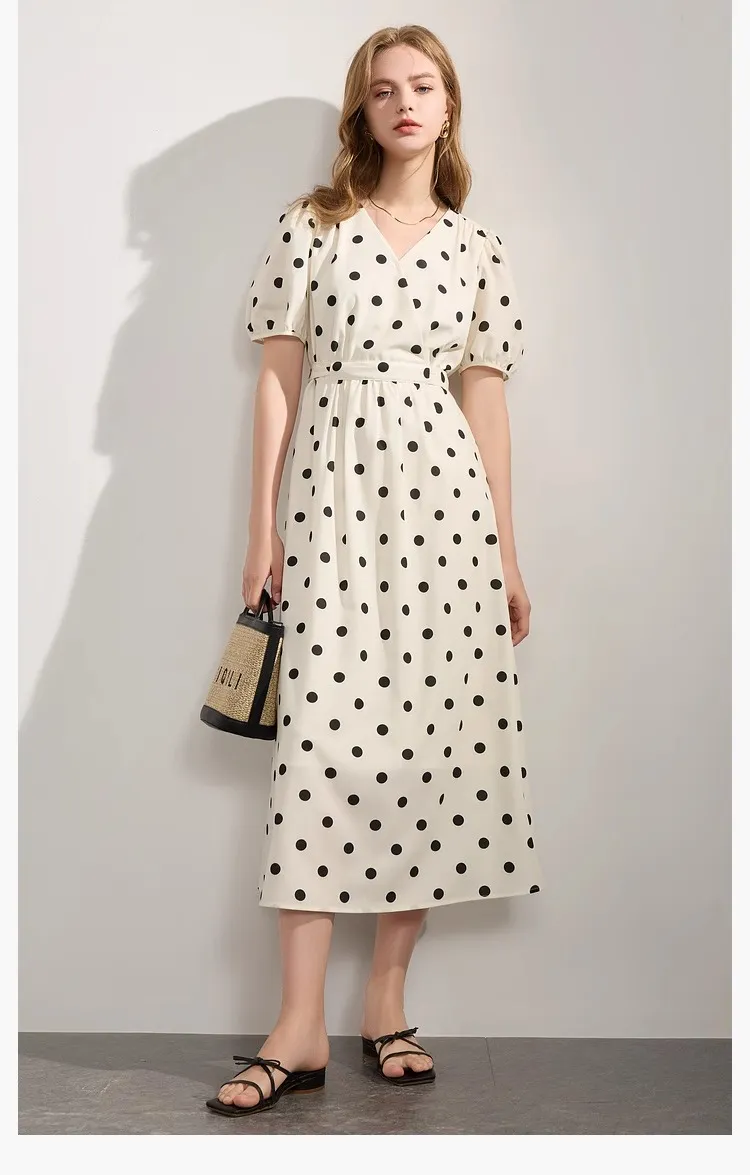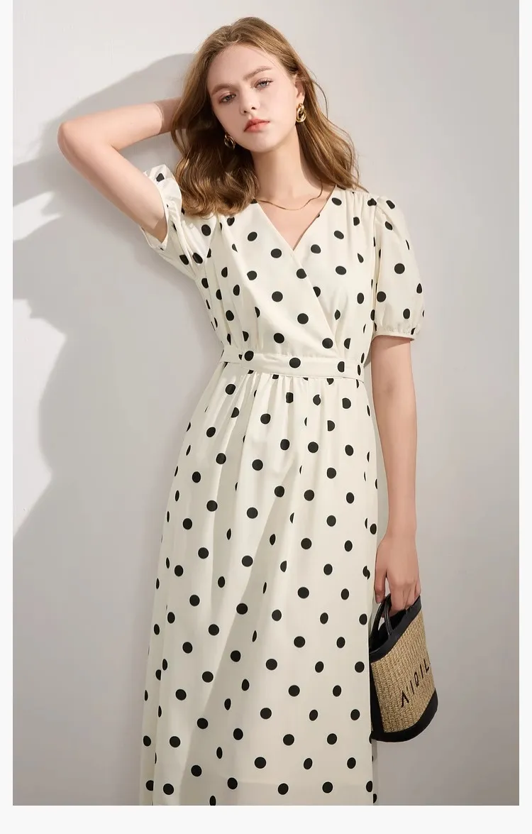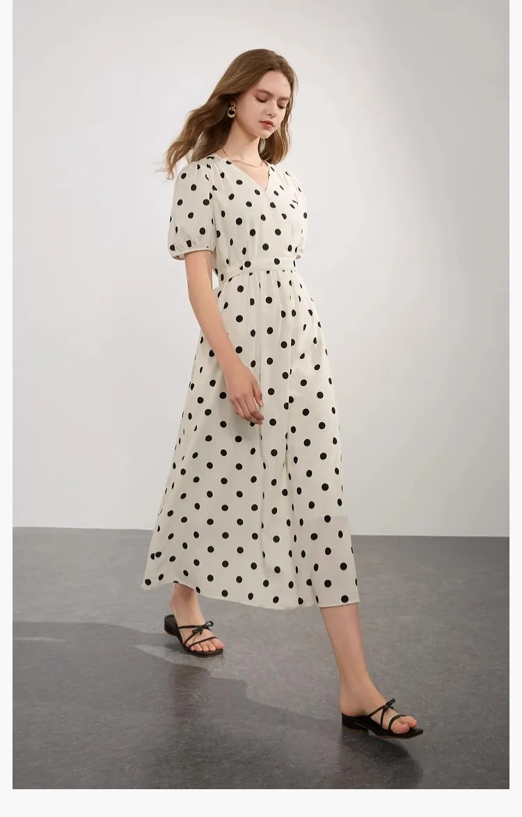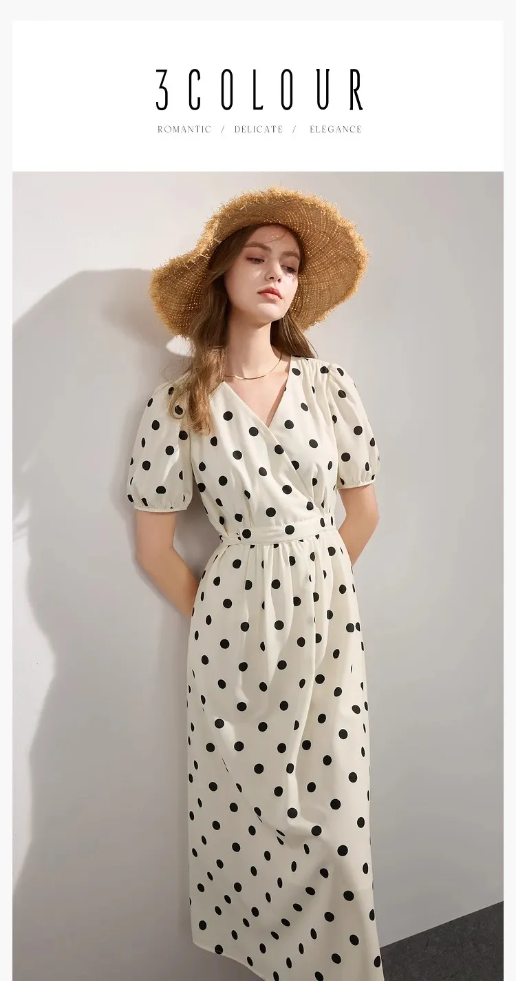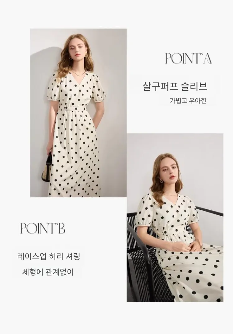 3COLOUR 아이보리 여성 반팔 원피스 - POIZON