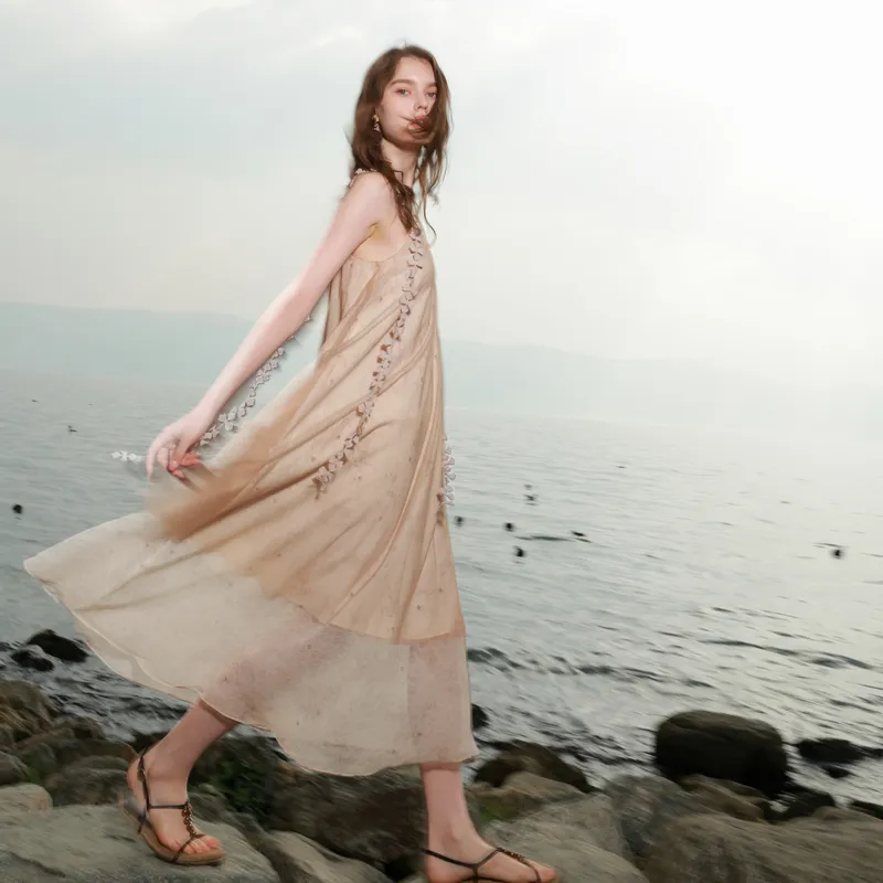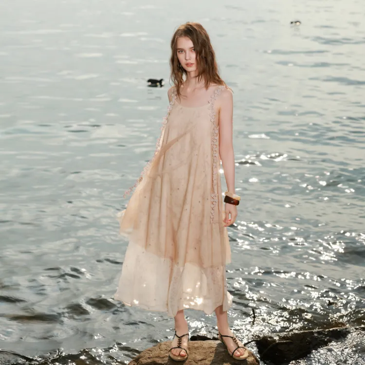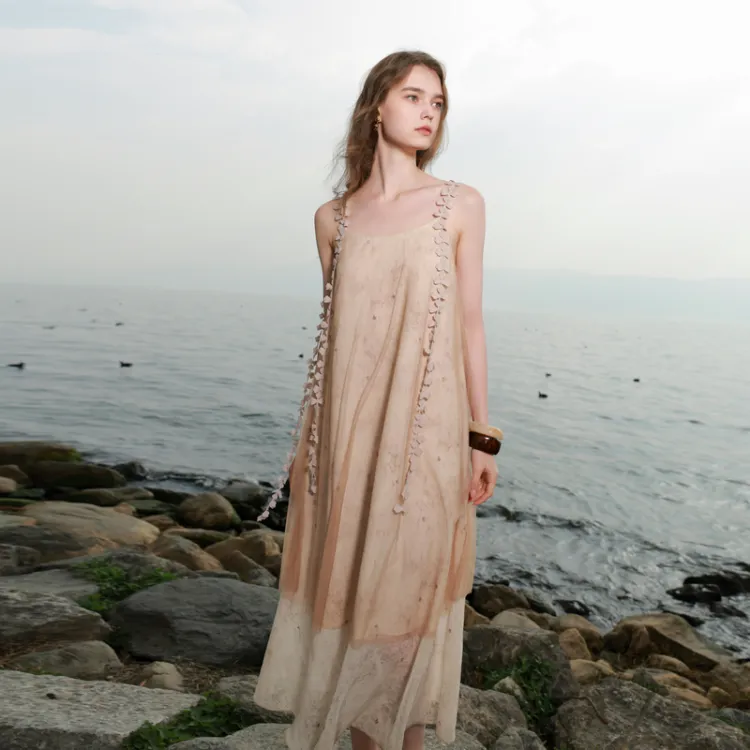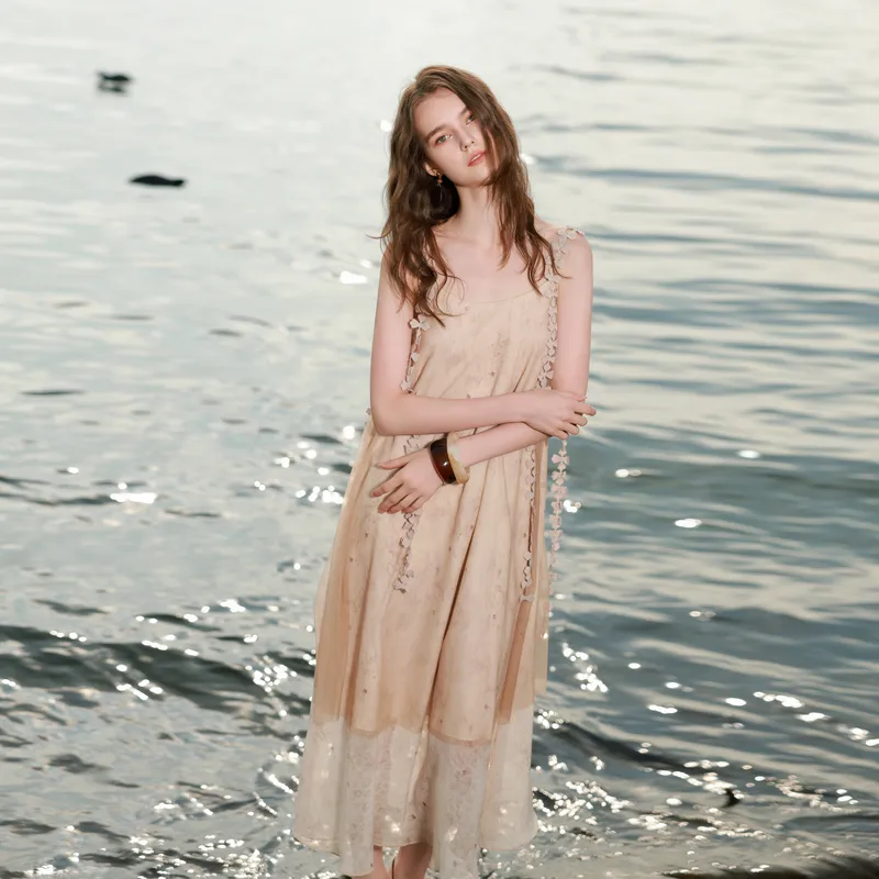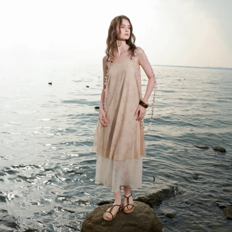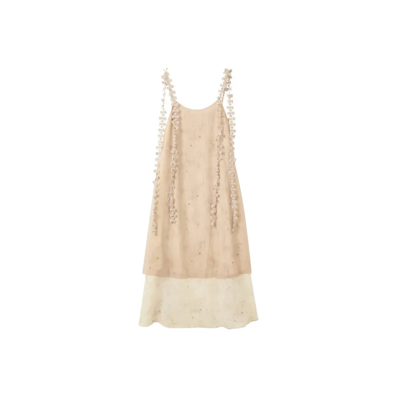 3COLOUR 커피와 베이지 여성 슬립 원피스 - POIZON