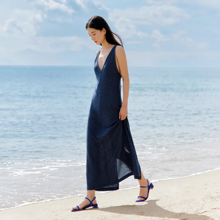 7or9 블루 인디고 플라워 일자 스트랩 샌들 3.5CM 여성 로열 블루 - POIZON