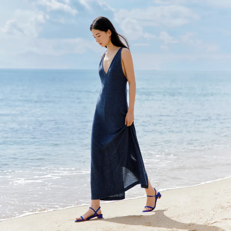 7or9 블루 인디고 플라워 일자 스트랩 샌들 3.5CM 여성 로열 블루