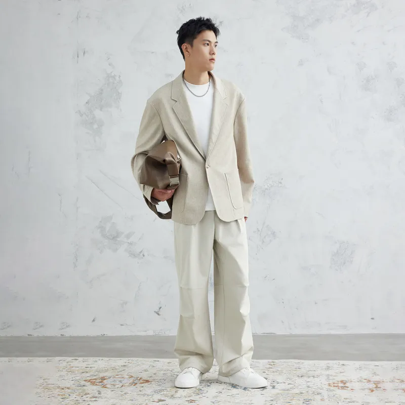 원단: 90.7% 폴리에스터, 6.4% 린넨, 2.9% 스판덱스 안감: 100% 폴리에스터