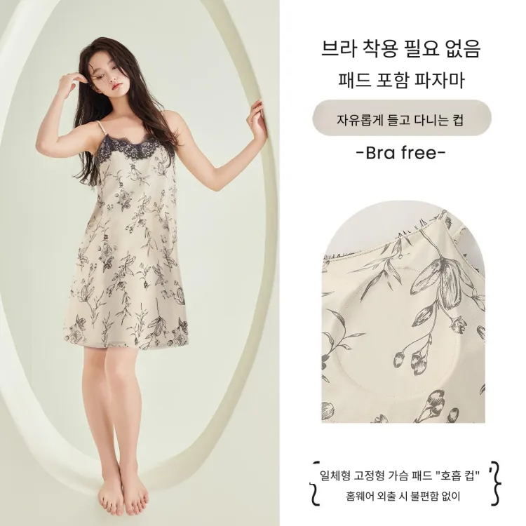 Aannsfam 크림 애프리콧 옐로우 패드 포함 여성 나이트 가운 - POIZON