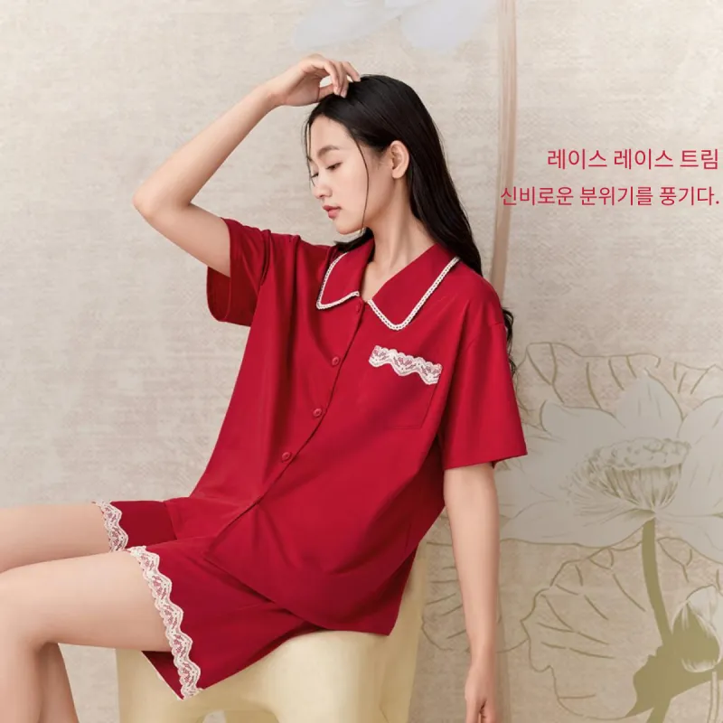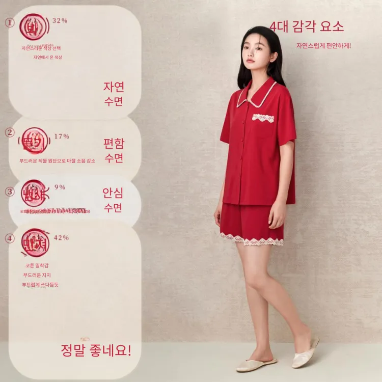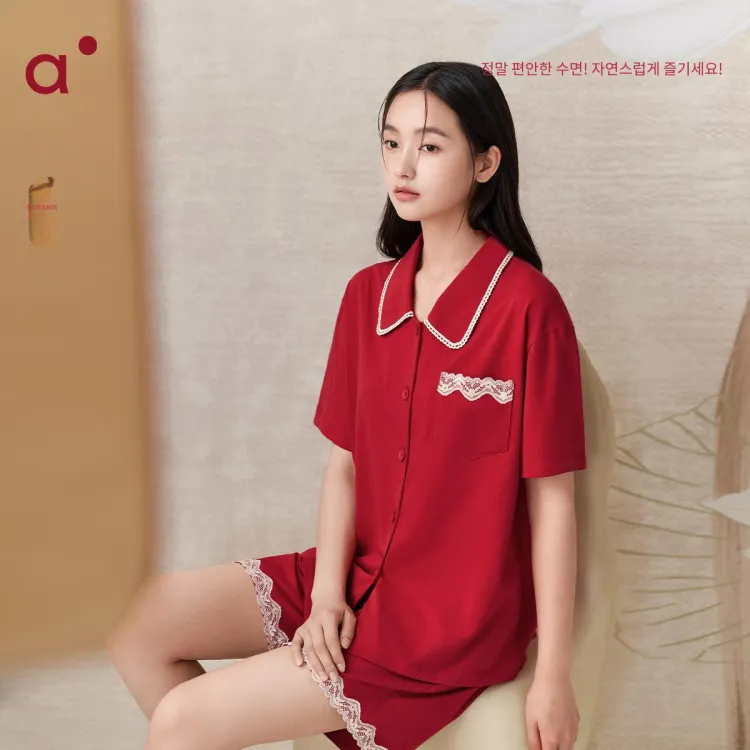Aannsfam 버건디 여성 파자마 세트 - POIZON