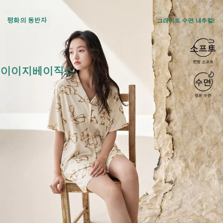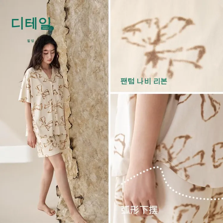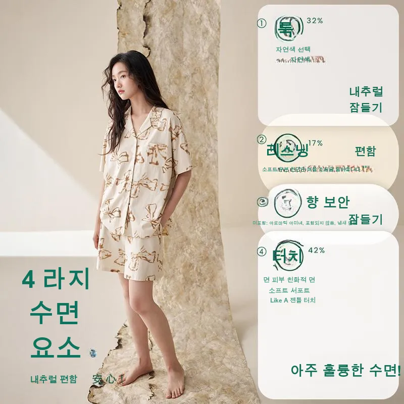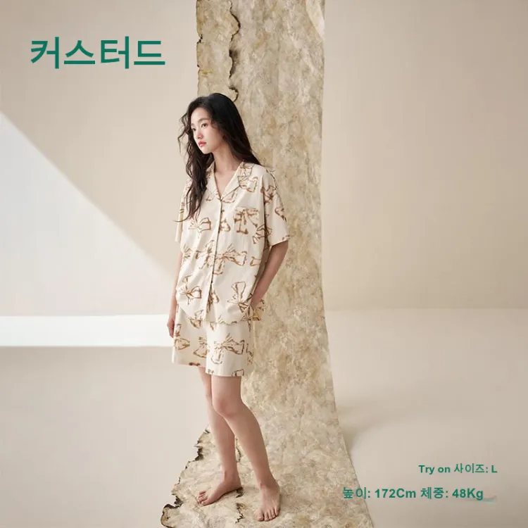 Aannsfam 크림 옐로우 여성 파자마 세트 - POIZON