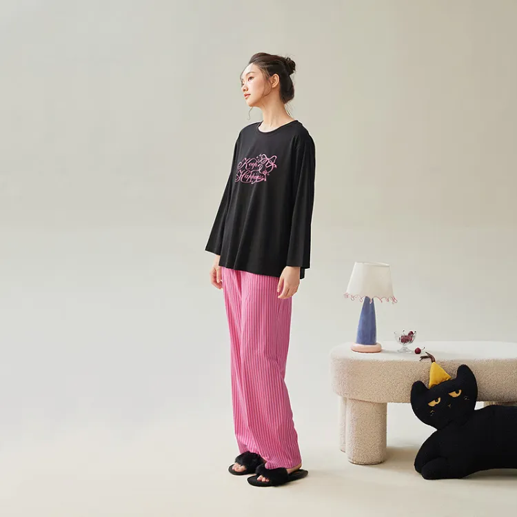 Aannsfam 베이직 블랙 여성 파자마 세트 - POIZON
