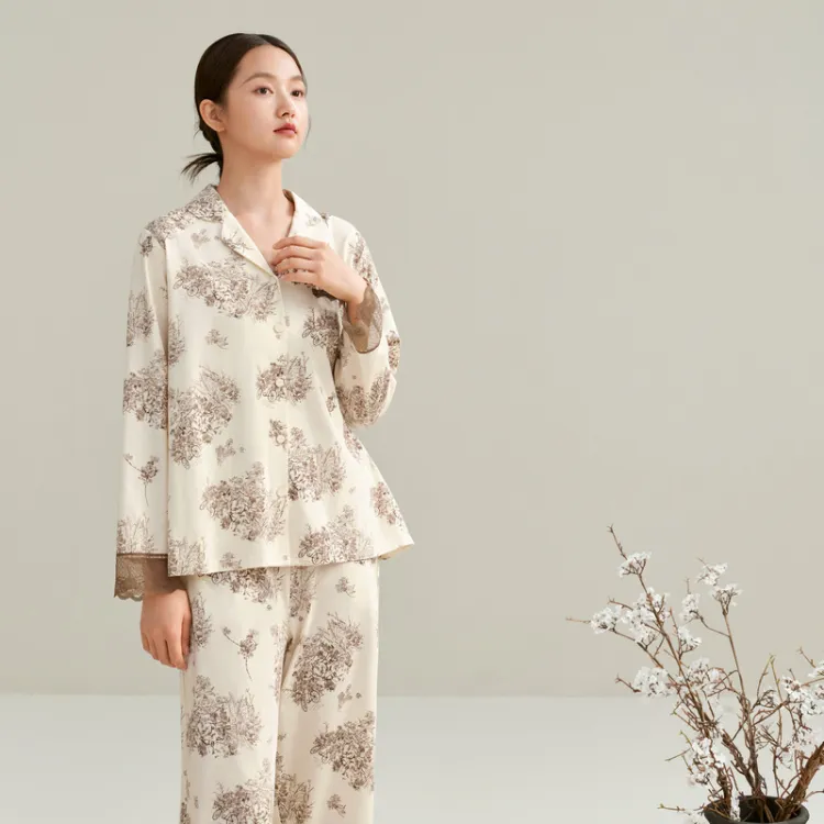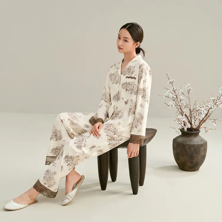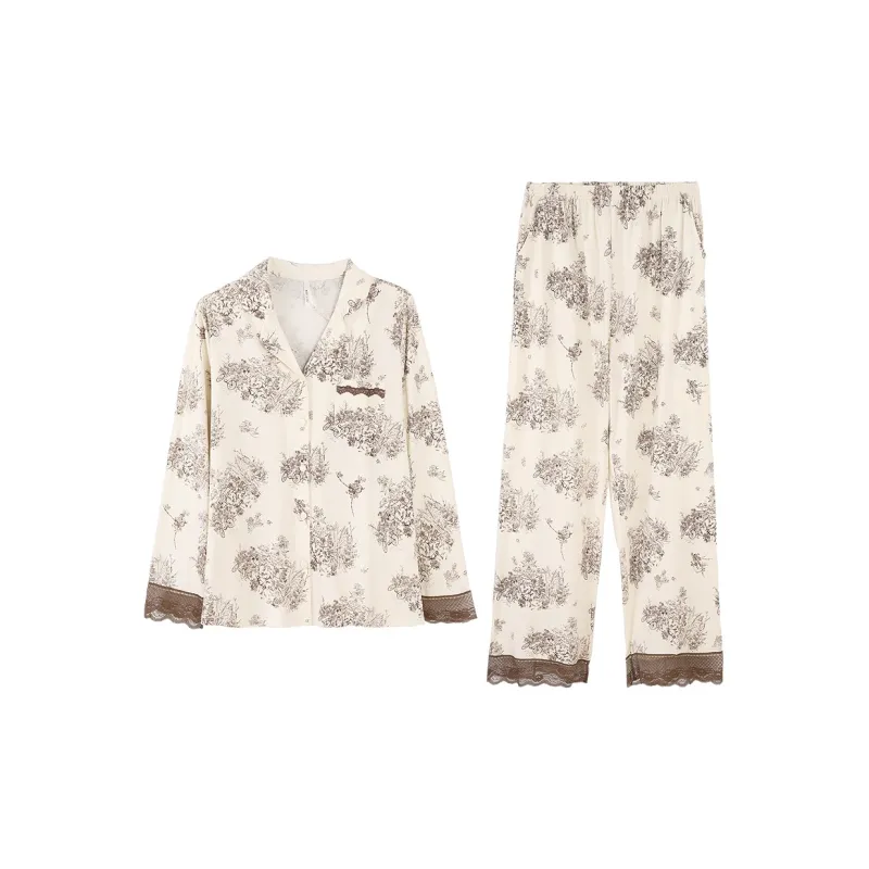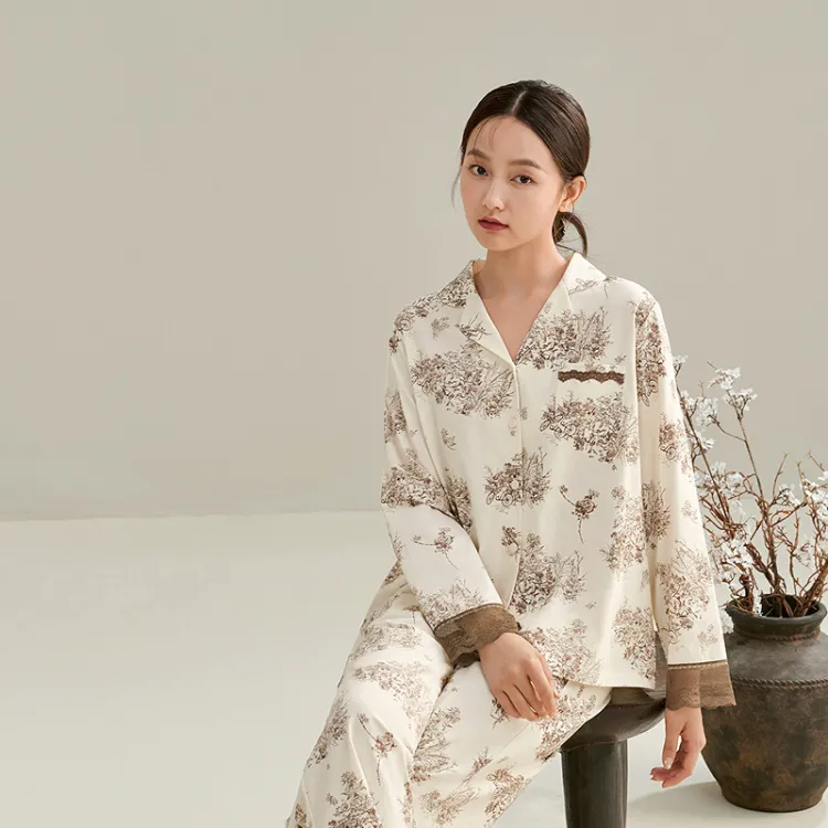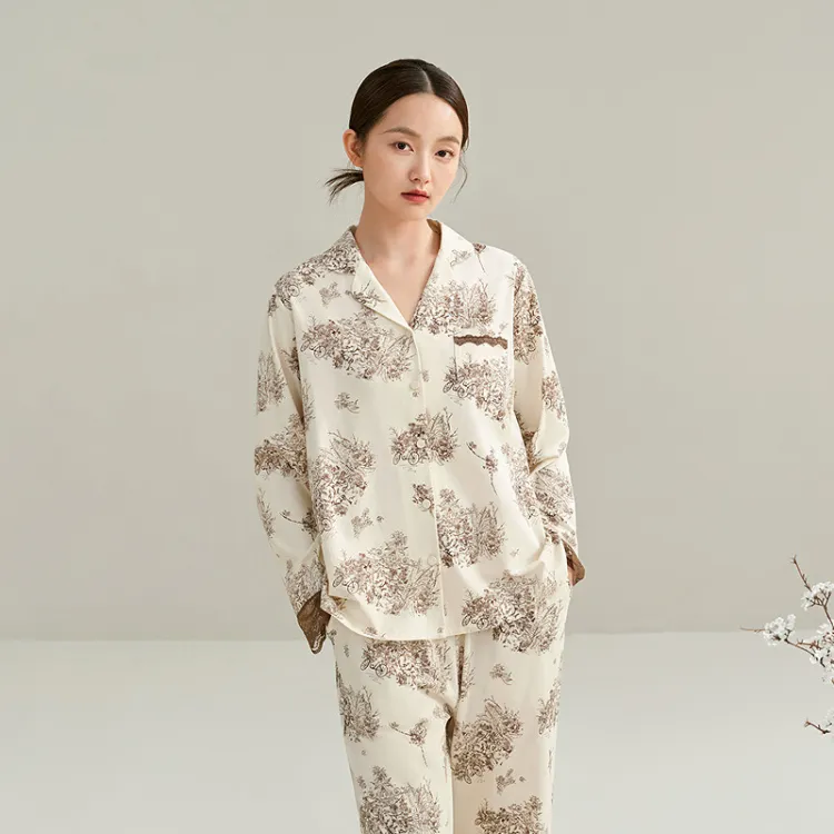 Aannsfam 겉감 원단 옐로우 여성 파자마 세트 - POIZON