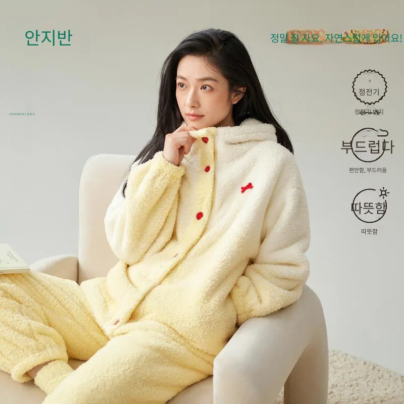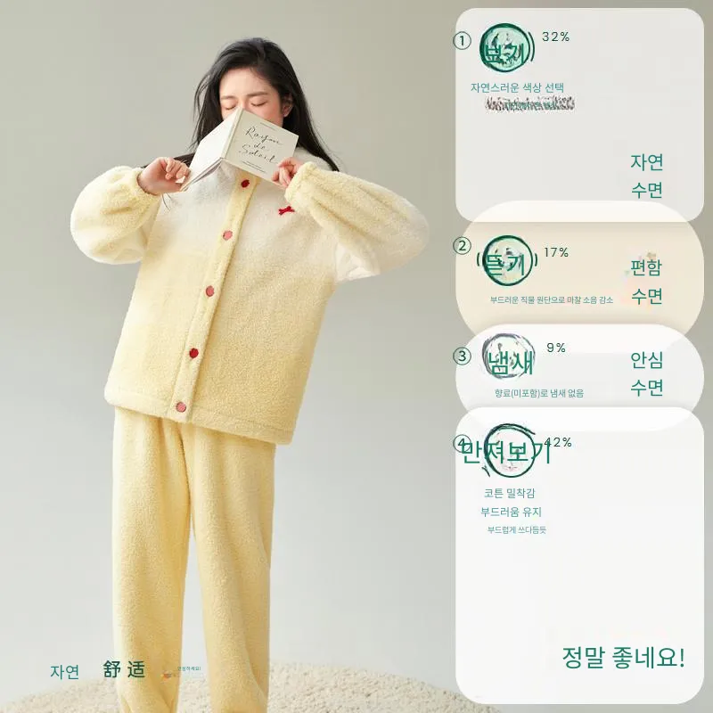 Aannsfam 크레센트 옐로우 여성 파자마 세트 - POIZON