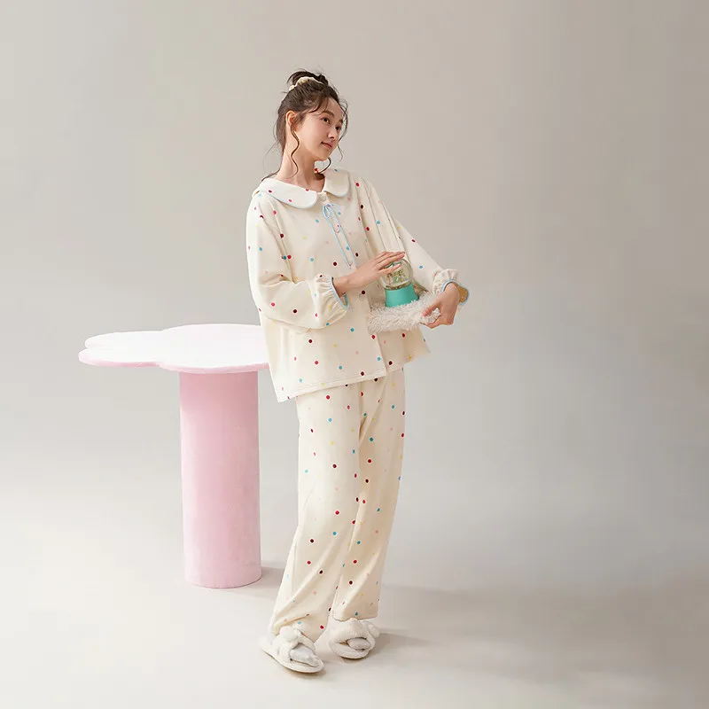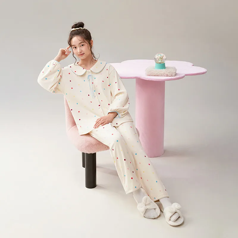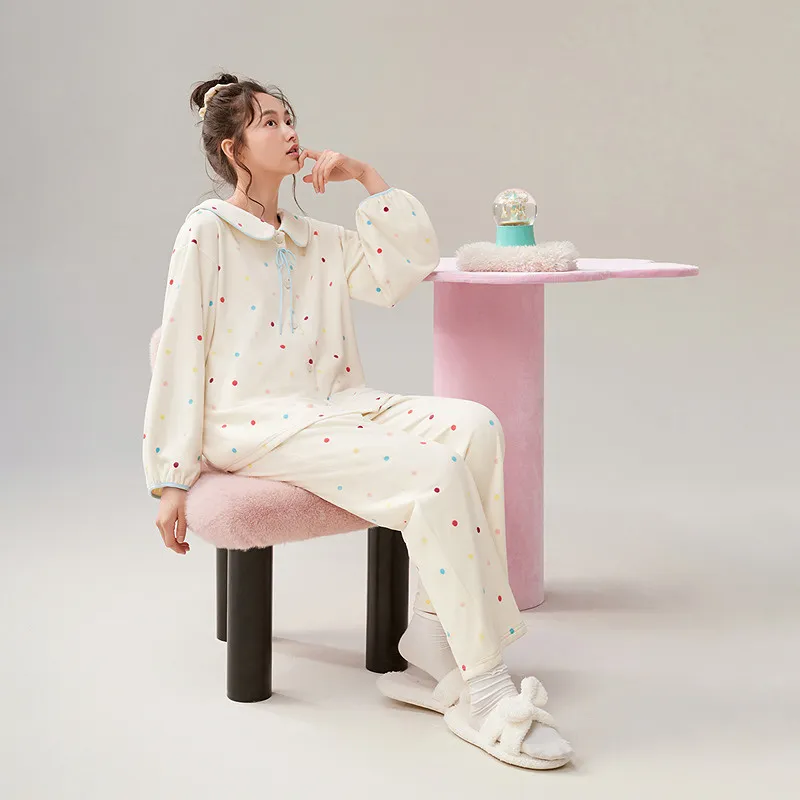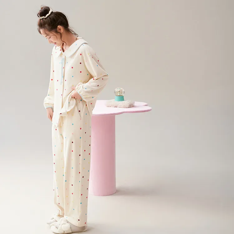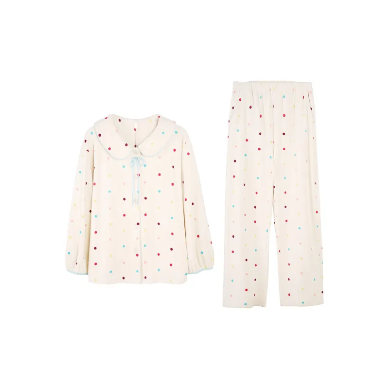 Aannsfam 겉감 원단 옐로우 여성 파자마 세트 - POIZON
