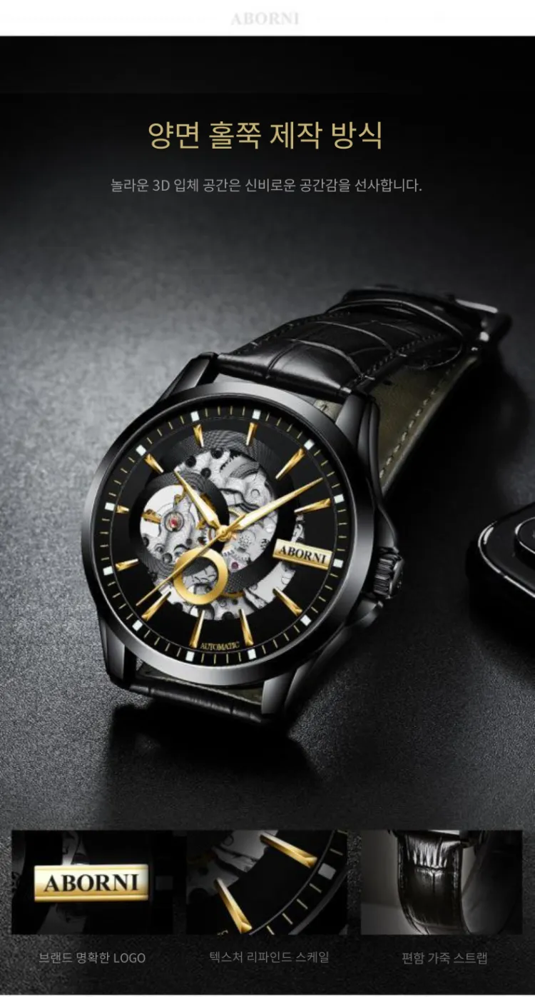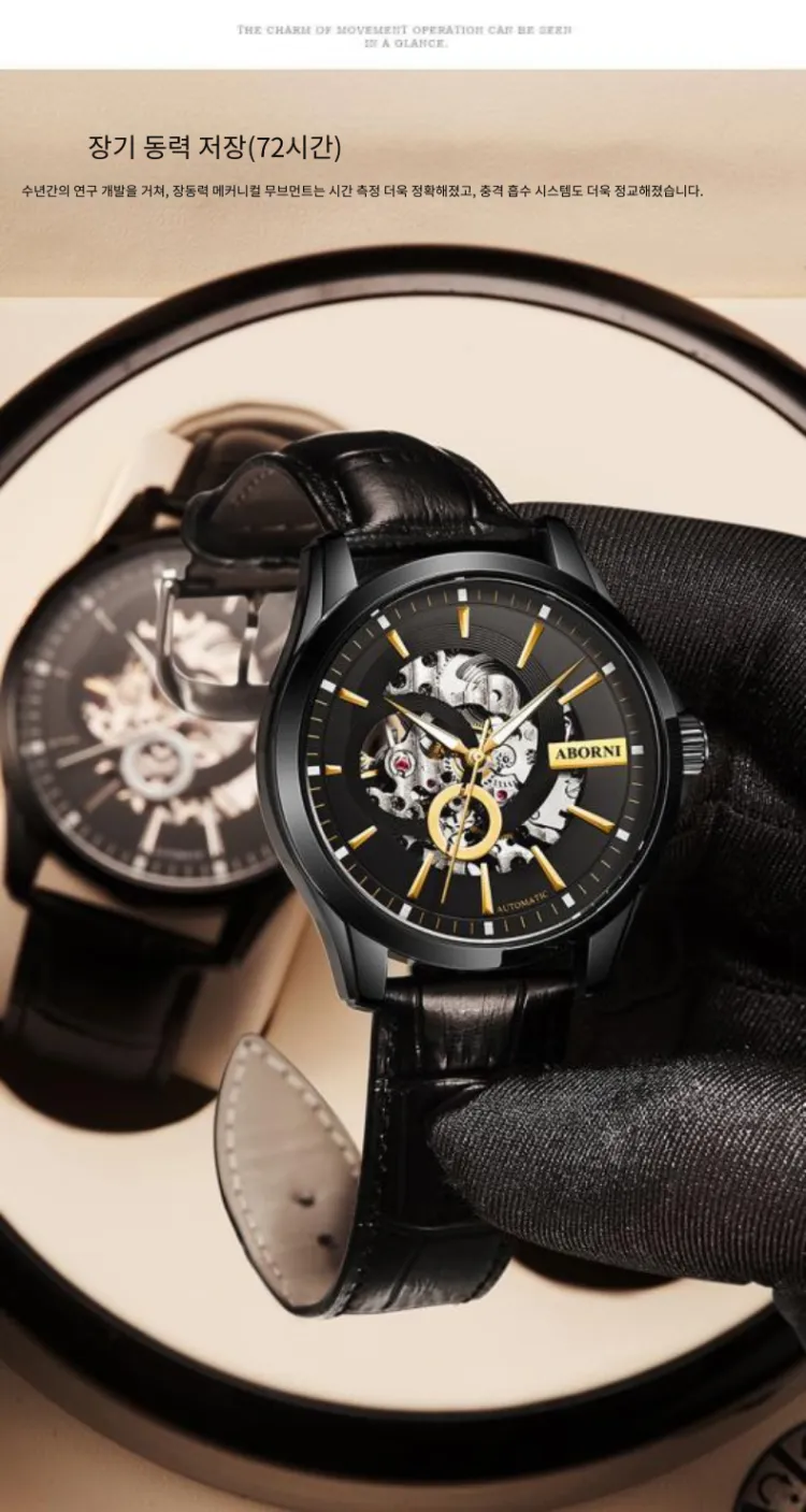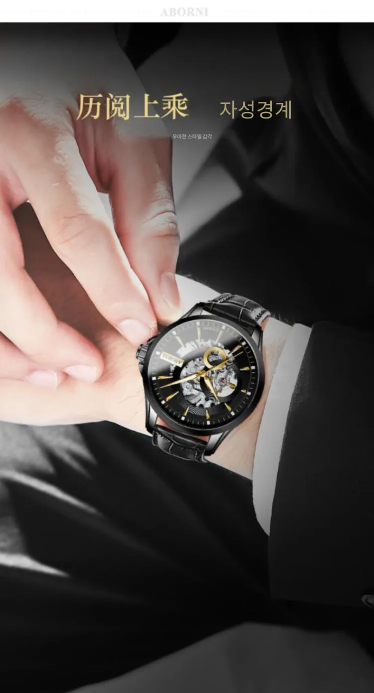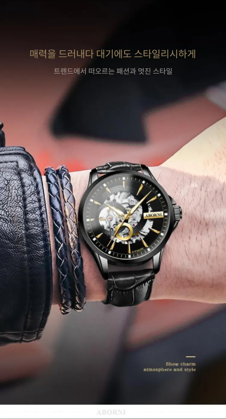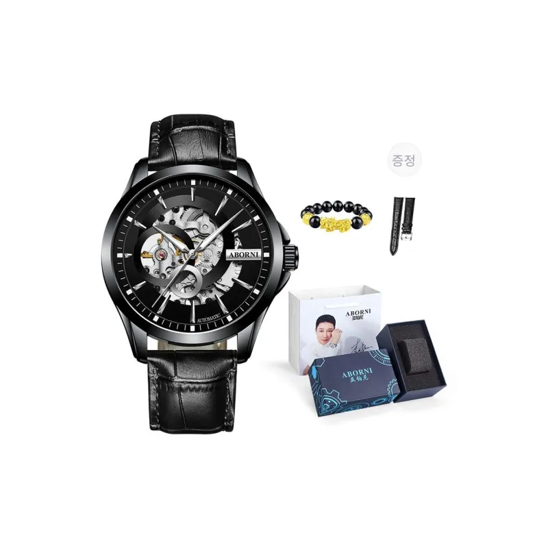 ABORNI 쿨 컬렉션 오토매틱 메커니컬 무브먼트 레더 스트랩 중국 시계 남성용 시계 해골 다이얼
