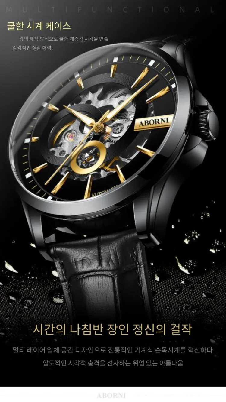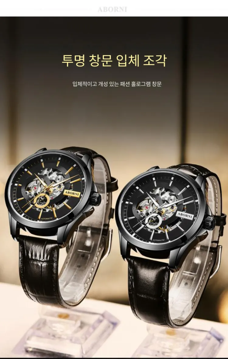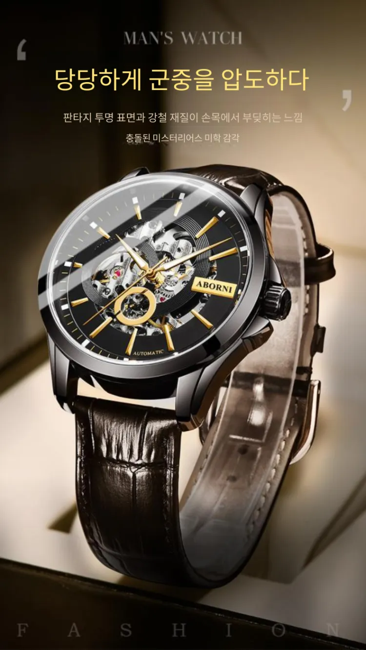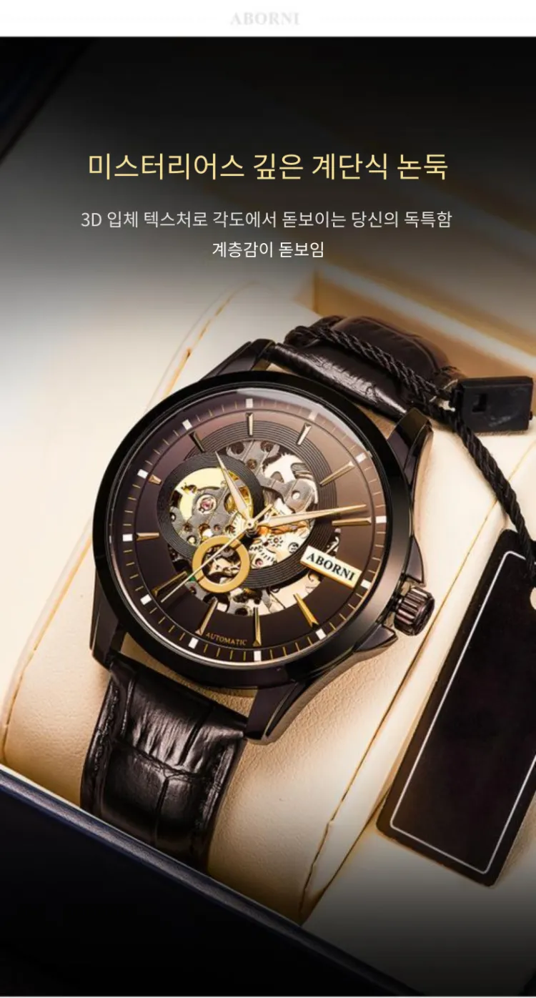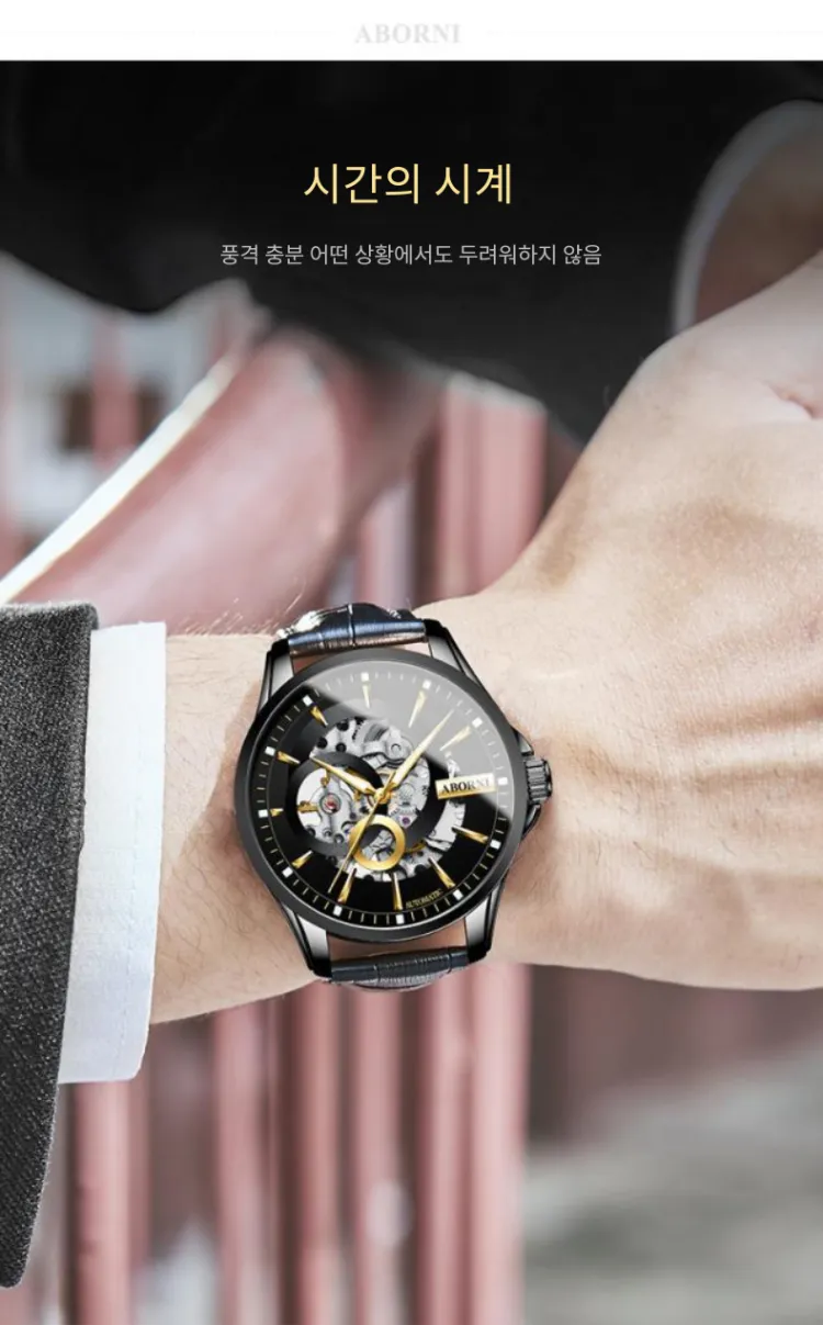 ABORNI 쿨 컬렉션 오토매틱 메커니컬 무브먼트 레더 스트랩 중국 시계 남성용 시계 해골 다이얼