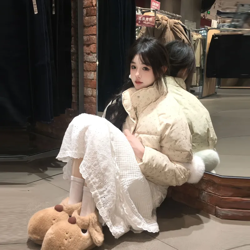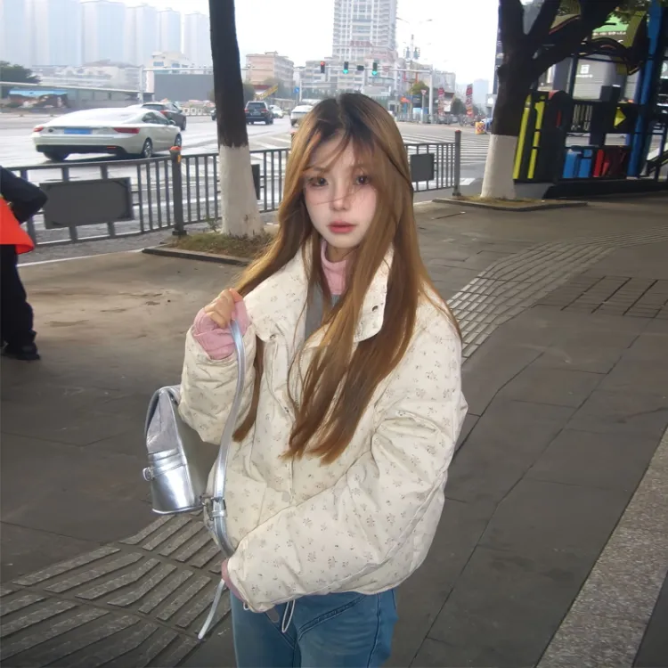 ACAINES 핑크 플로럴 여성 다운 재킷 - POIZON