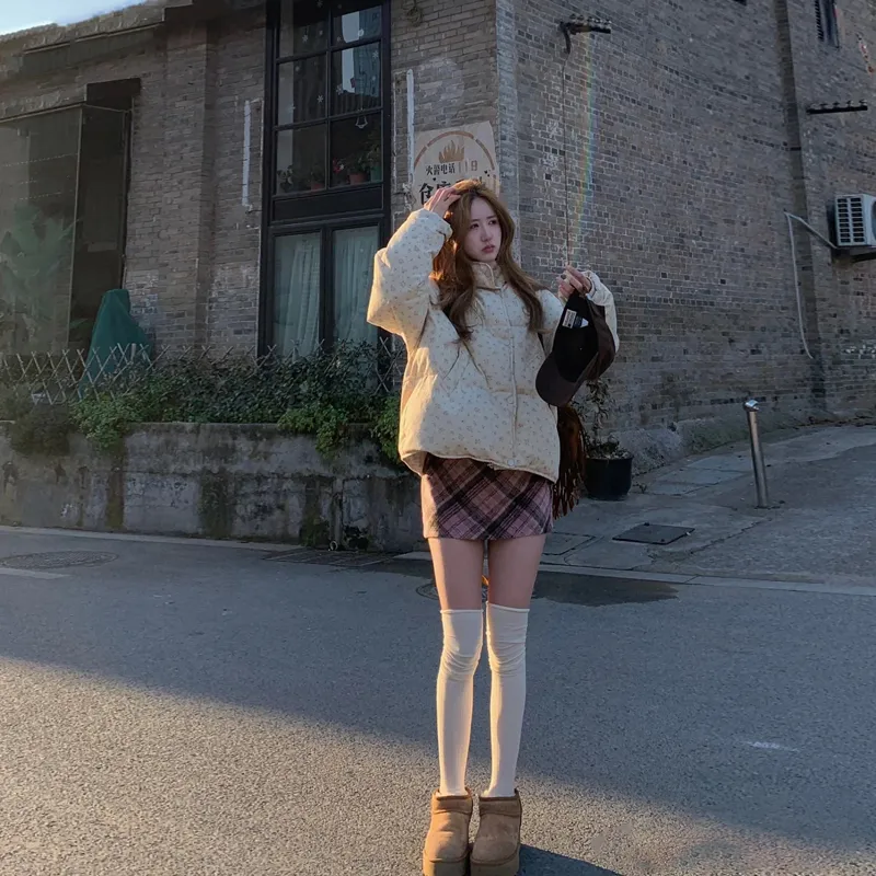ACAINES 핑크 플로럴 여성 다운 재킷
