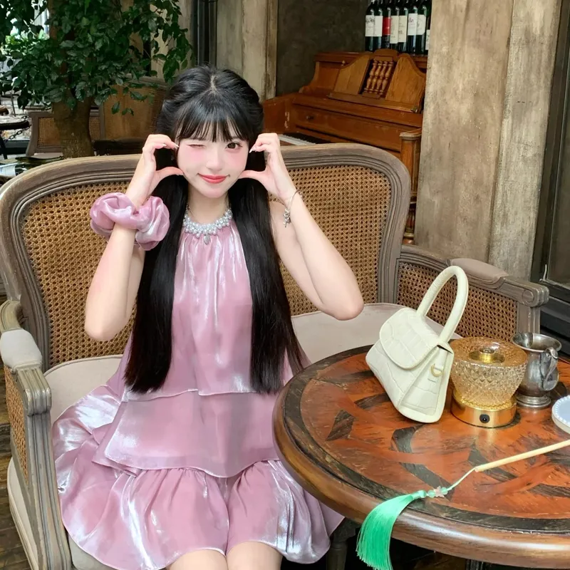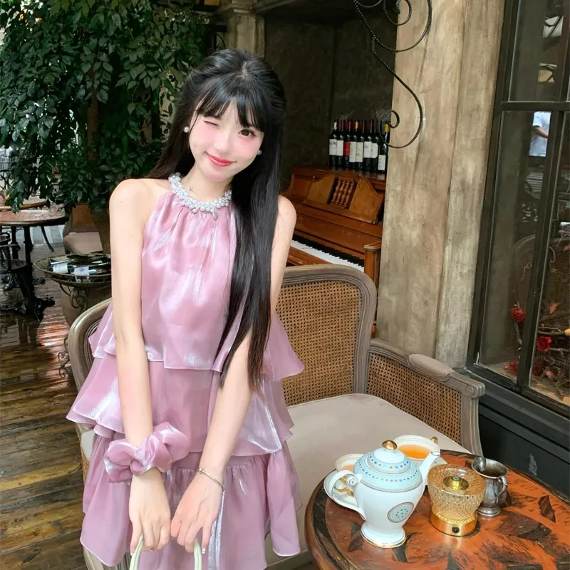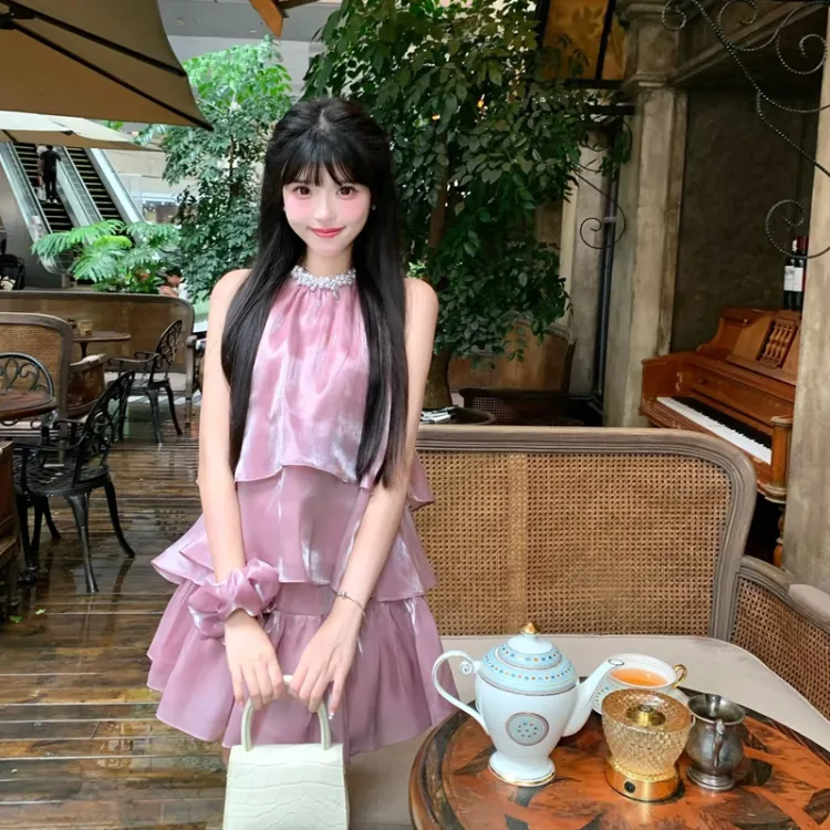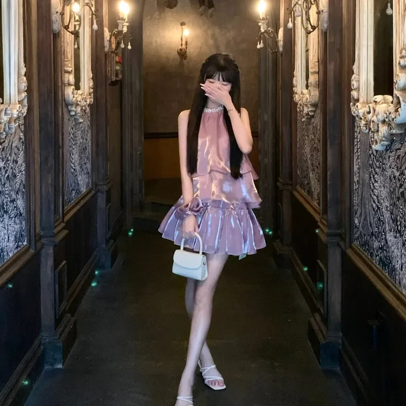 ACAINES 웨이브스 오브 퍼플 라이트 여성 민소매 원피스 - POIZON