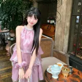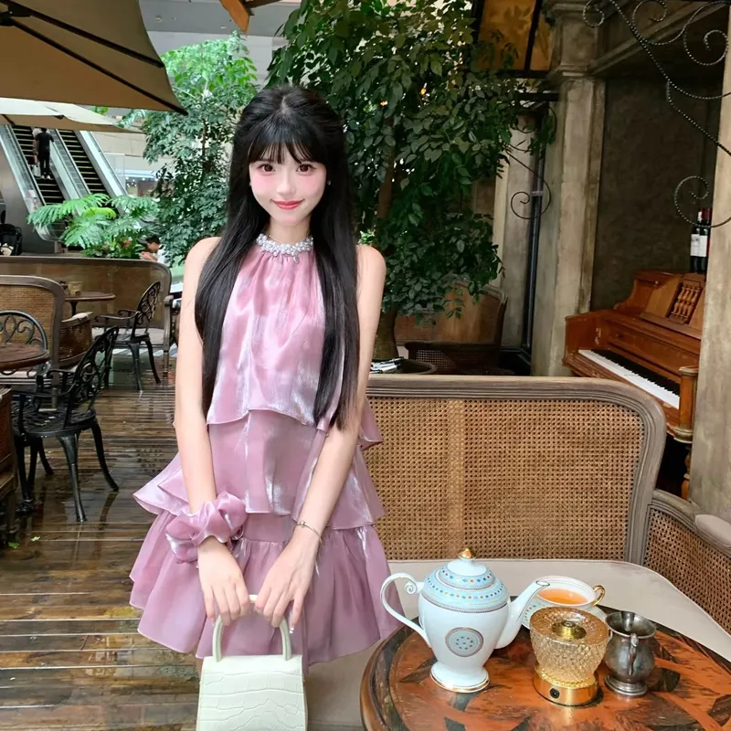 ACAINES 웨이브스 오브 퍼플 라이트 여성 민소매 원피스
