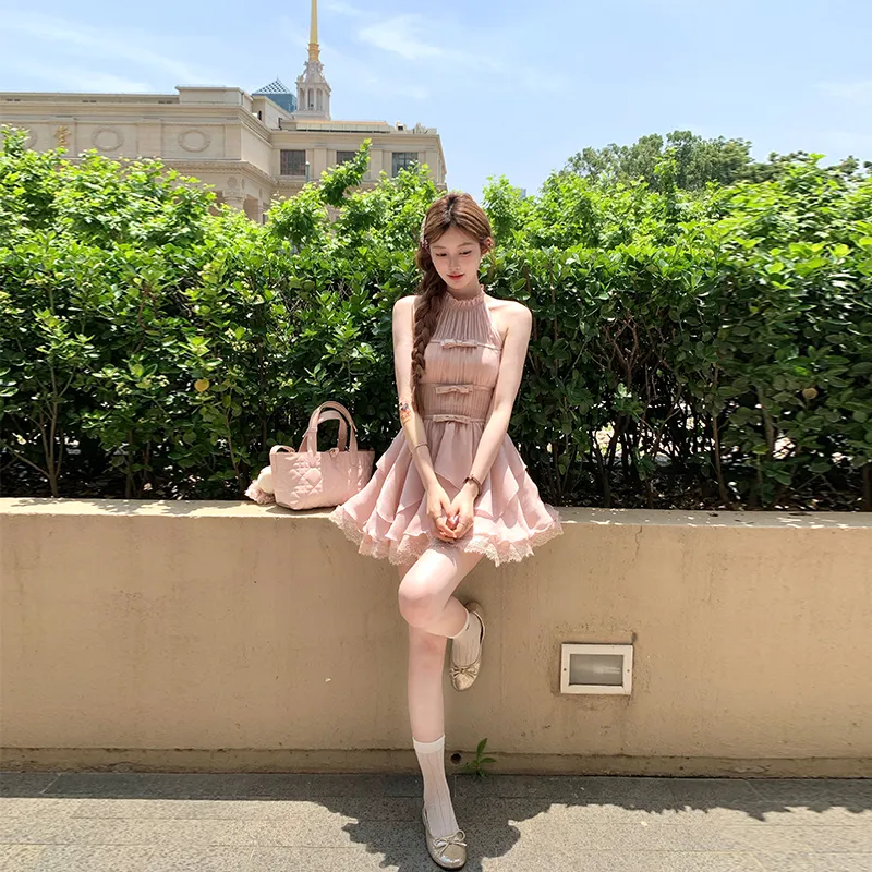 ACAINES 샴페인 핑크 여성 민소매 원피스 - POIZON