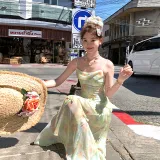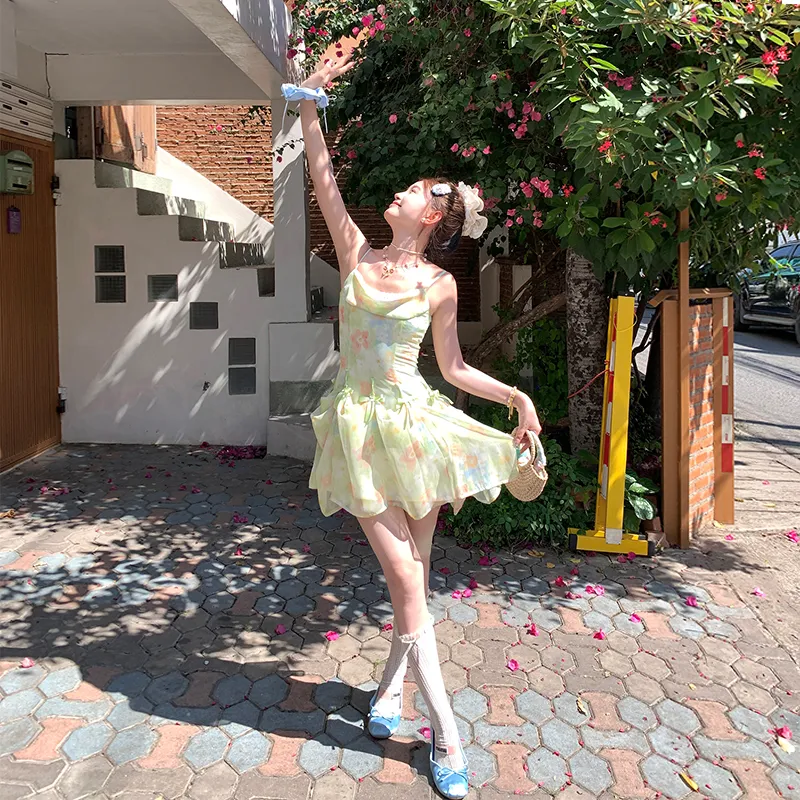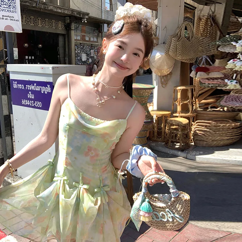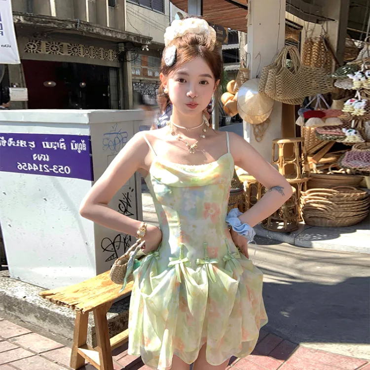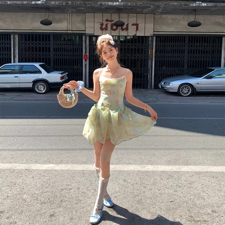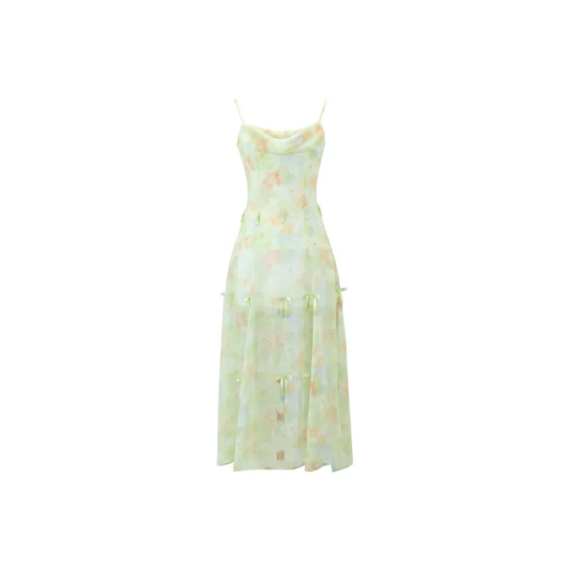 ACAINES 그레이프 그린 여성 슬립 원피스 - POIZON