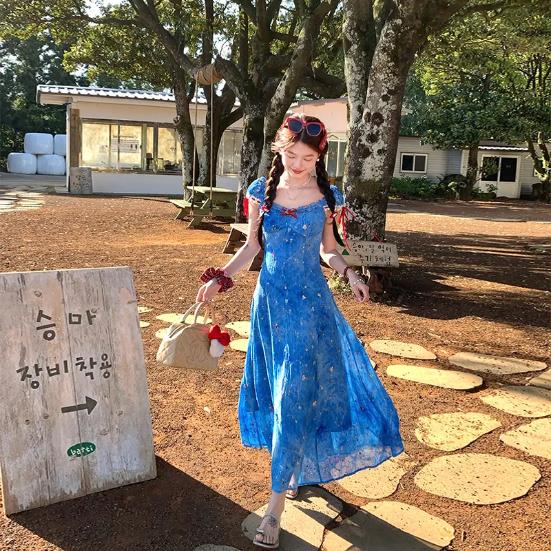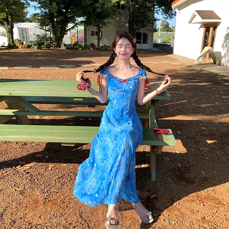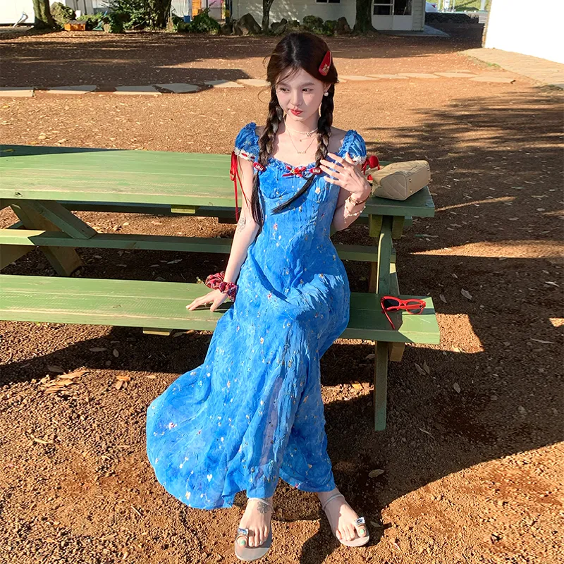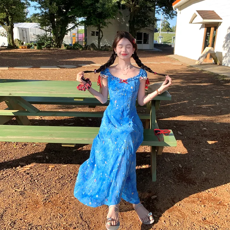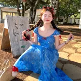 ACAINES 오션 블루 여성 슬립 원피스 - POIZON