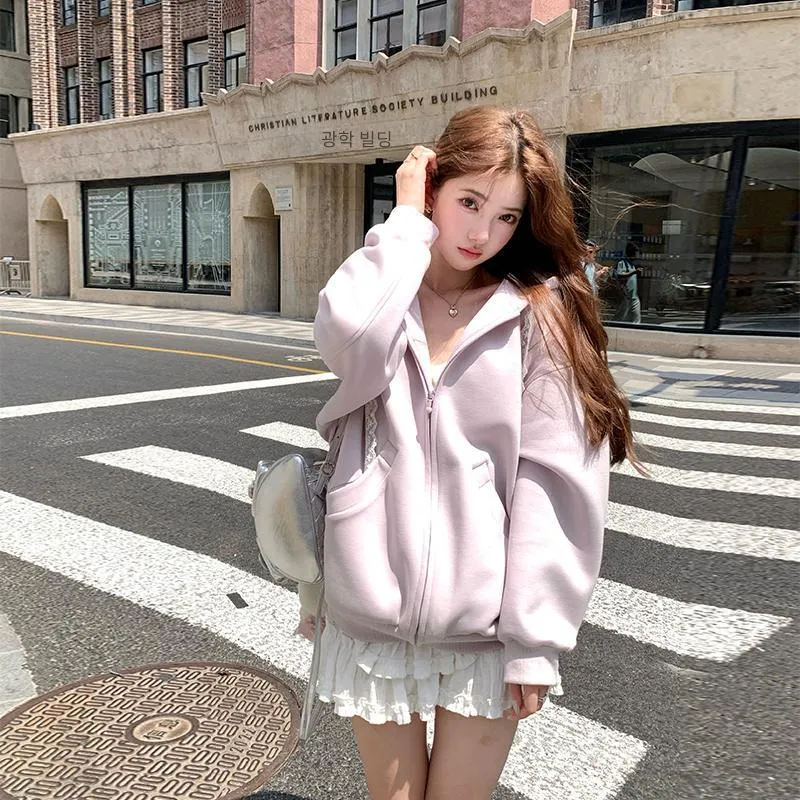 ACAINES 밀크 타로 퍼플 여성 벨벳 재킷