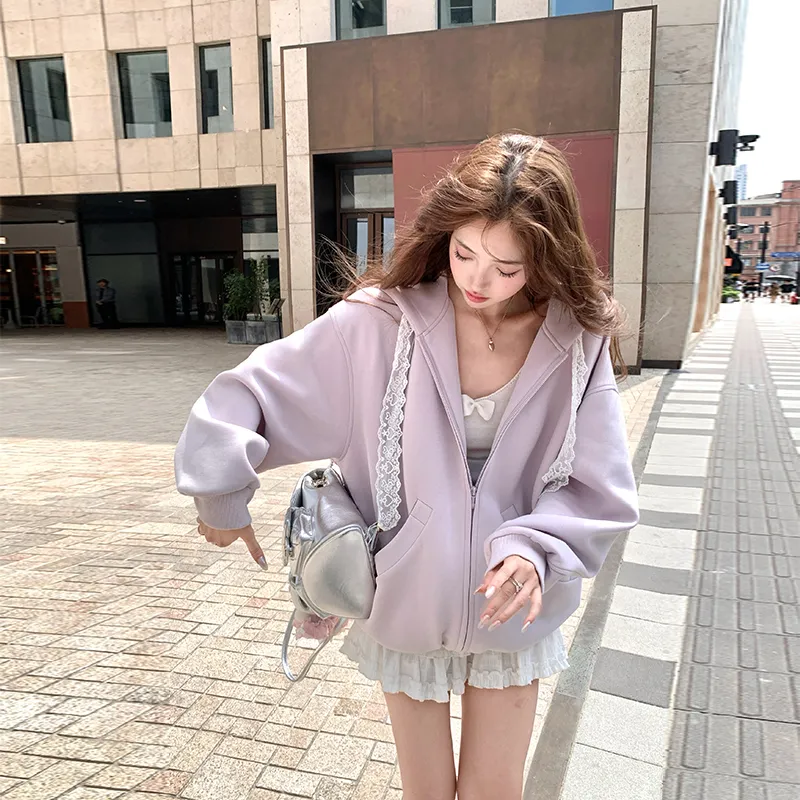 ACAINES 밀크 타로 퍼플 여성 벨벳 재킷 - POIZON