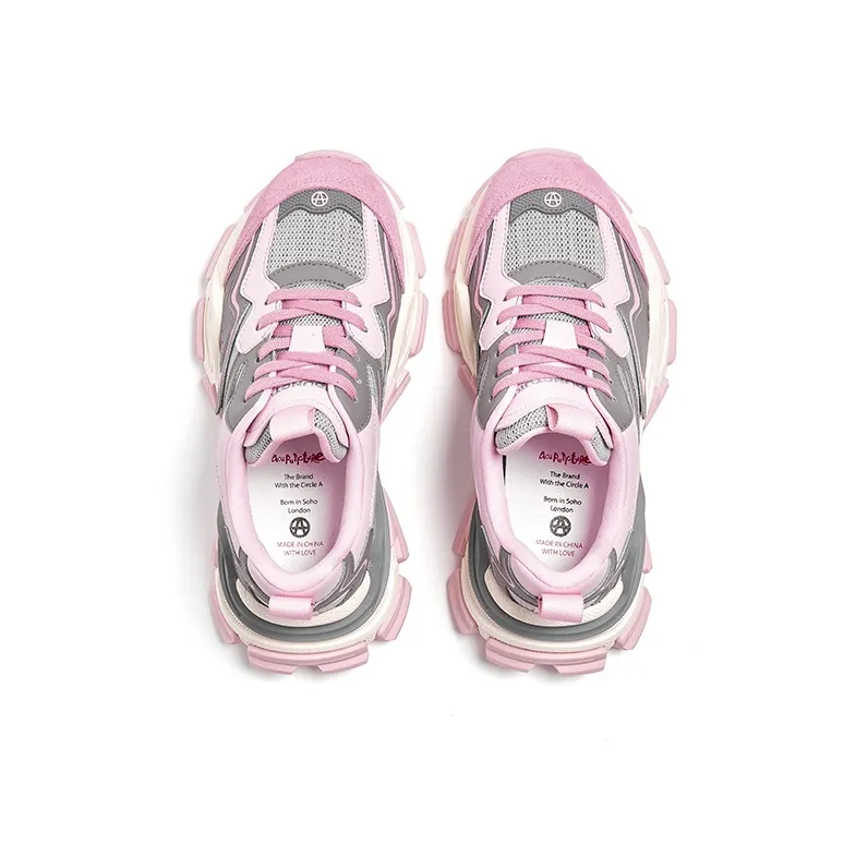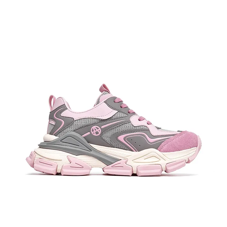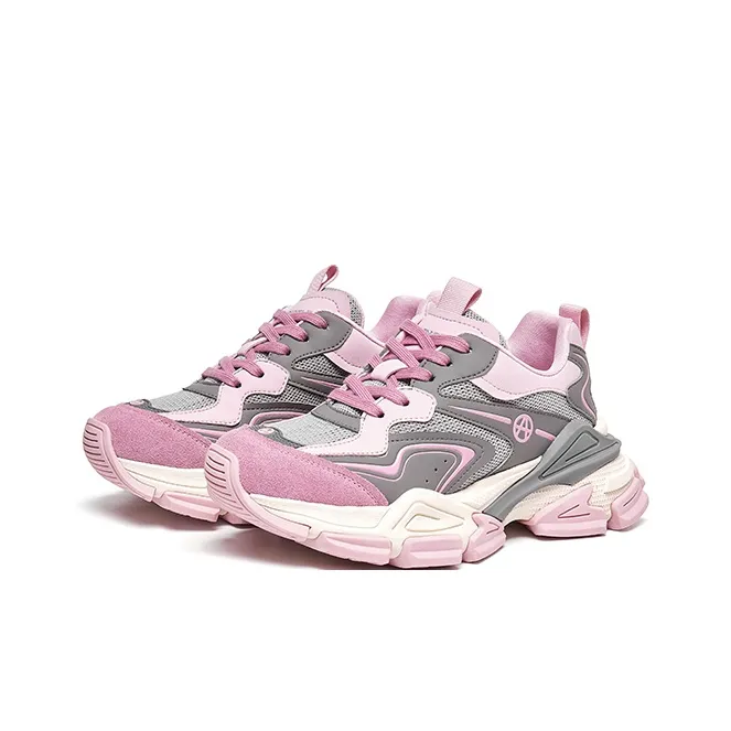Acupuncture 키높이, 내마모성, 가벼움, 통기성 좋음, 미끄럼 방지 로우탑 청키 스니커즈 여성 핑크 - POIZON