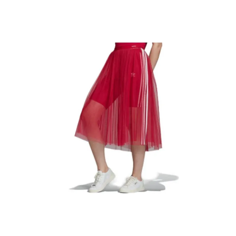 아디다스 오리지널스 레드 여성 캐주얼 롱 스커트 - POIZON