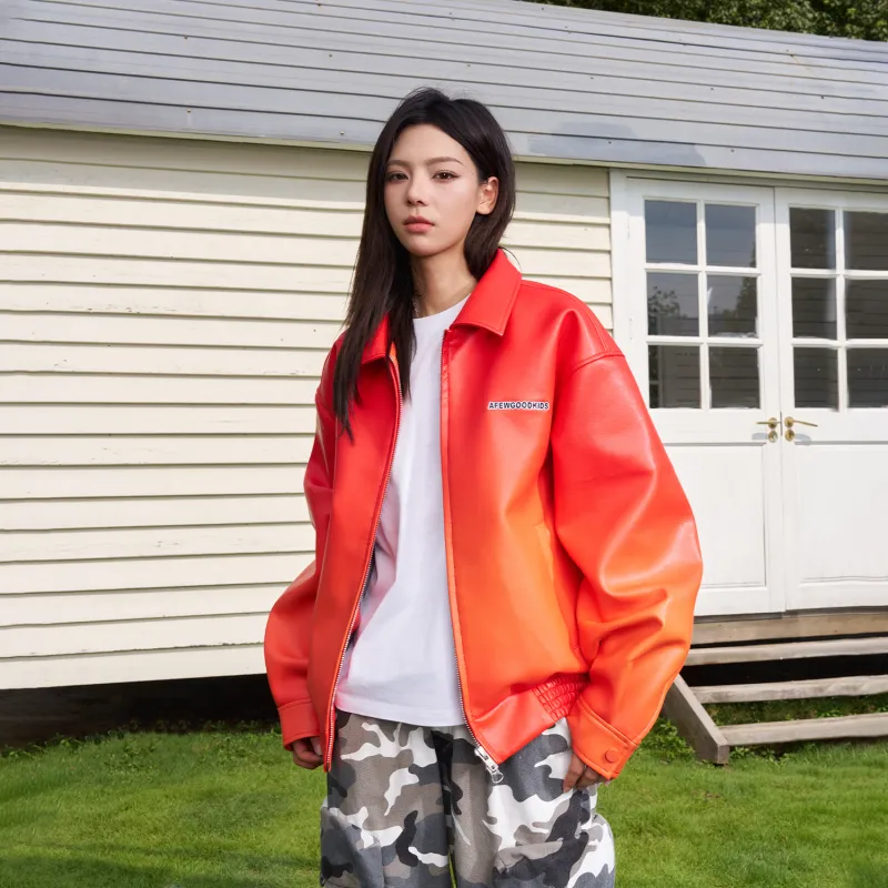 AFGK 그라데이션 레드 남녀공용 가죽 자켓 - POIZON