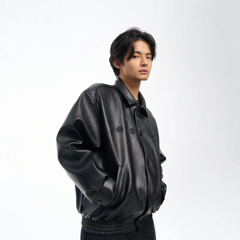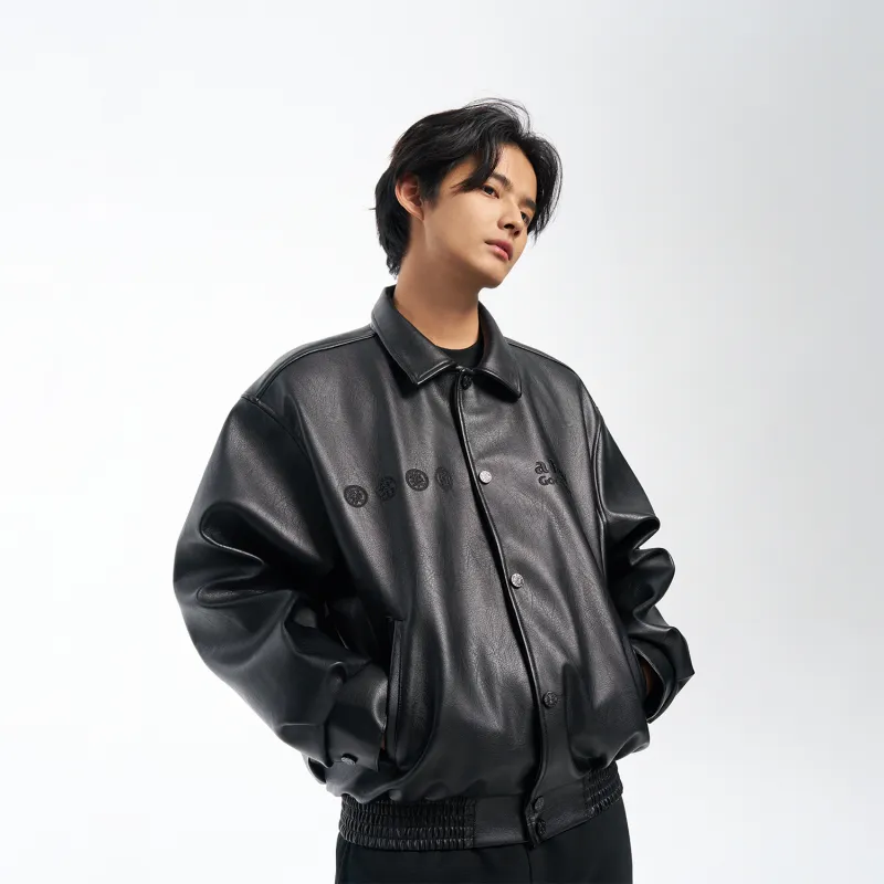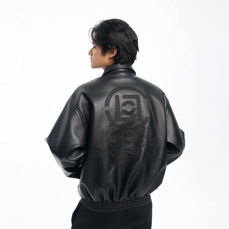 AFGK CLOTTEE 콜라보레이션 블랙 남녀공용 가죽 자켓 - POIZON