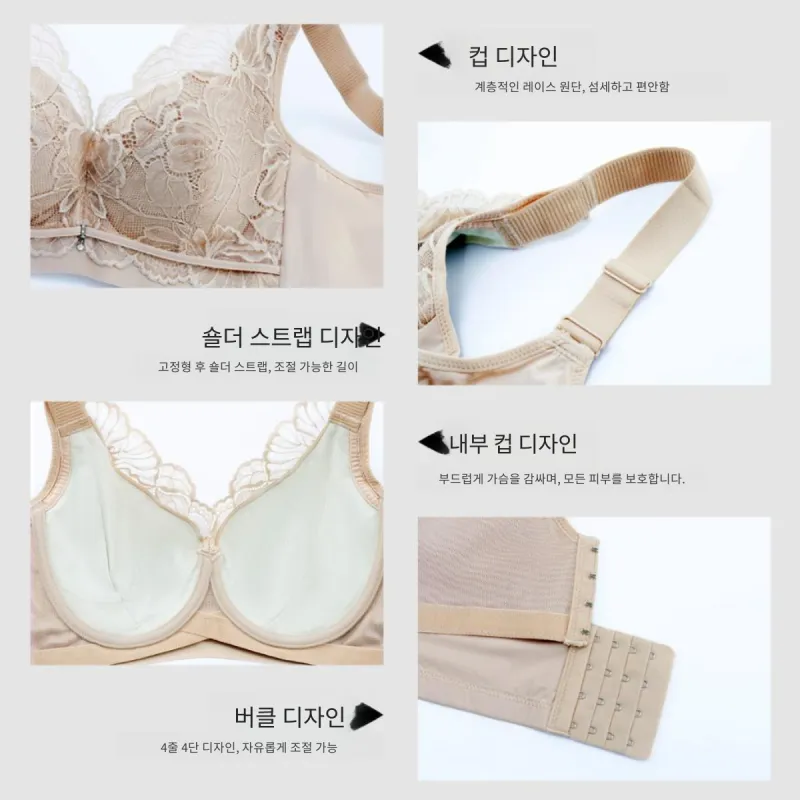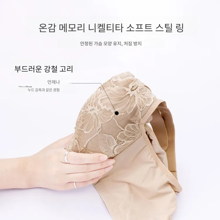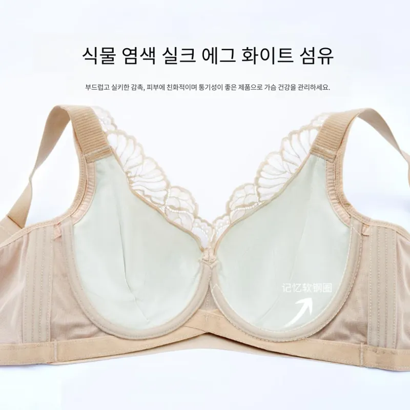 컵 안감 원단: 83% 재생 셀룰로오스 섬유, 11% 천연 실크, 6% 스판덱스 윙 안감: 78% 폴리아미드, 22% 스판덱스