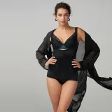 원단: 69% 나일론, 31% 스판덱스; 안감: 71% 나일론, 29% 스판덱스; 중간층: 83% 나일론, 17% 스판덱스; 크로치 안감: 100% 순면.