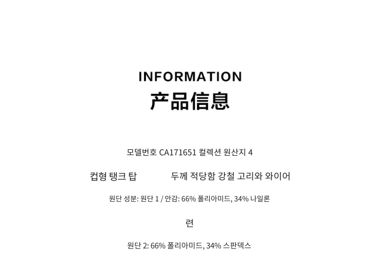 원단 1/안감: 66% 폴리아미드, 34% 스판덱스 원단 2: 66% 폴리아미드, 34% 스판덱스