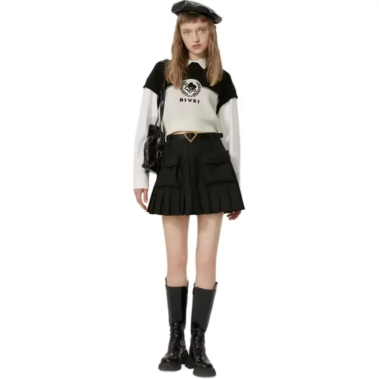 AIVEI 블랙 화이트 0300 여성 캐주얼 숏 스커트 - POIZON
