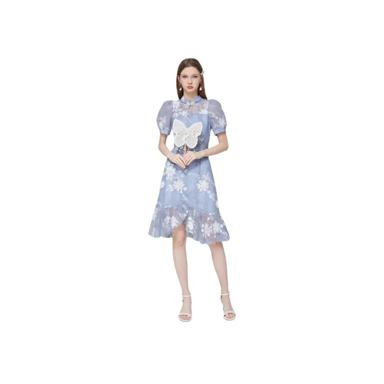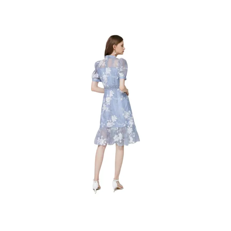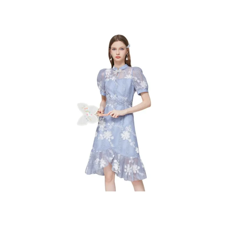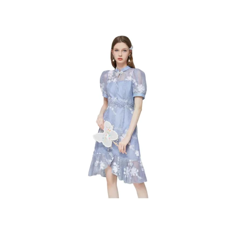 AIVEI 아쿠아 스모크 블루 여성 반팔 원피스 - POIZON