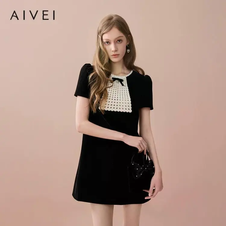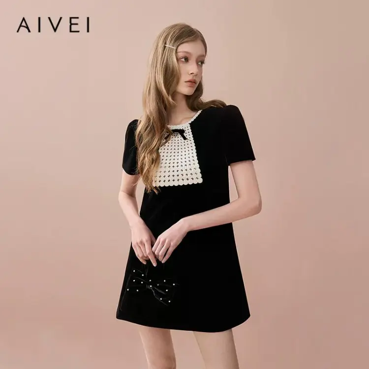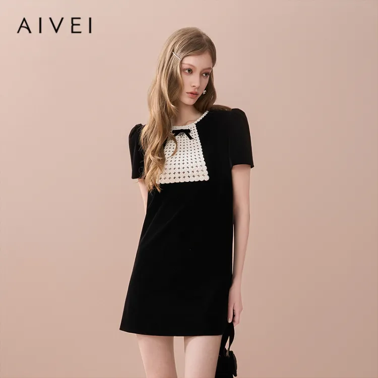 AIVEI 블랙 여성 반팔 원피스 - POIZON