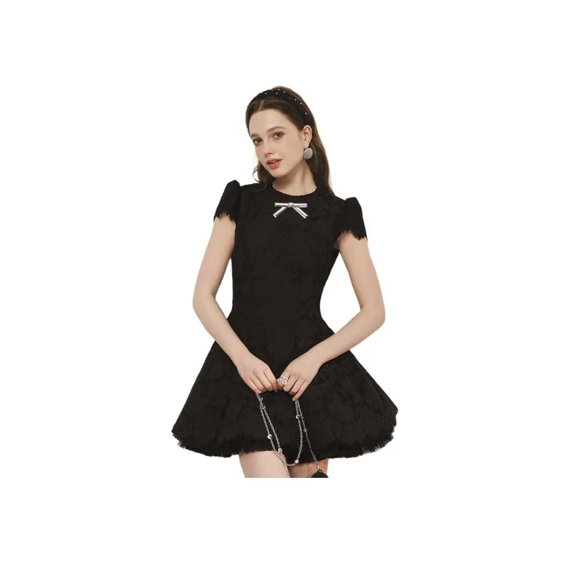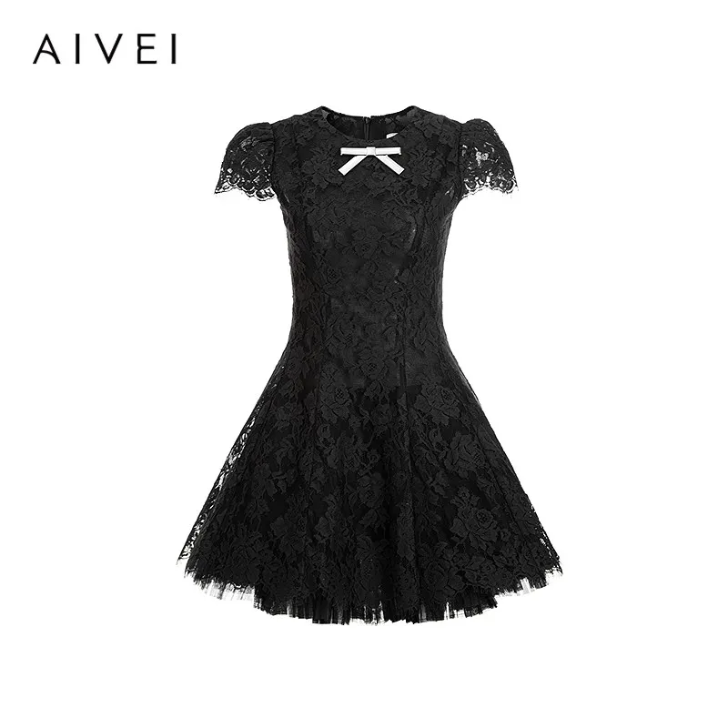 AIVEI 블랙 여성 반팔 원피스 - POIZON