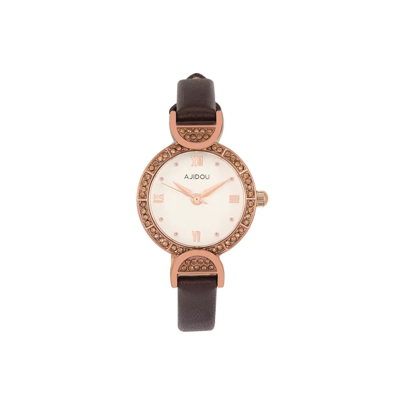 AJIDOU 쿼츠 무브먼트 소가죽 스트랩 중국 시계 여성 시계 화이트 다이얼