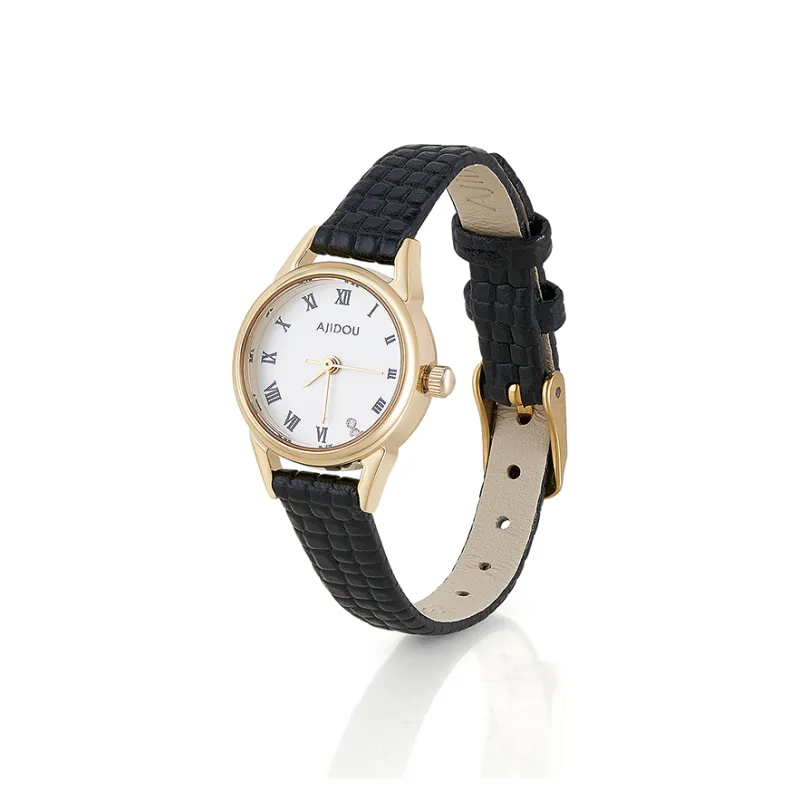 AJIDOU 쿼츠 무브먼트 소가죽 스트랩 중국 시계 여성 시계 화이트 다이얼