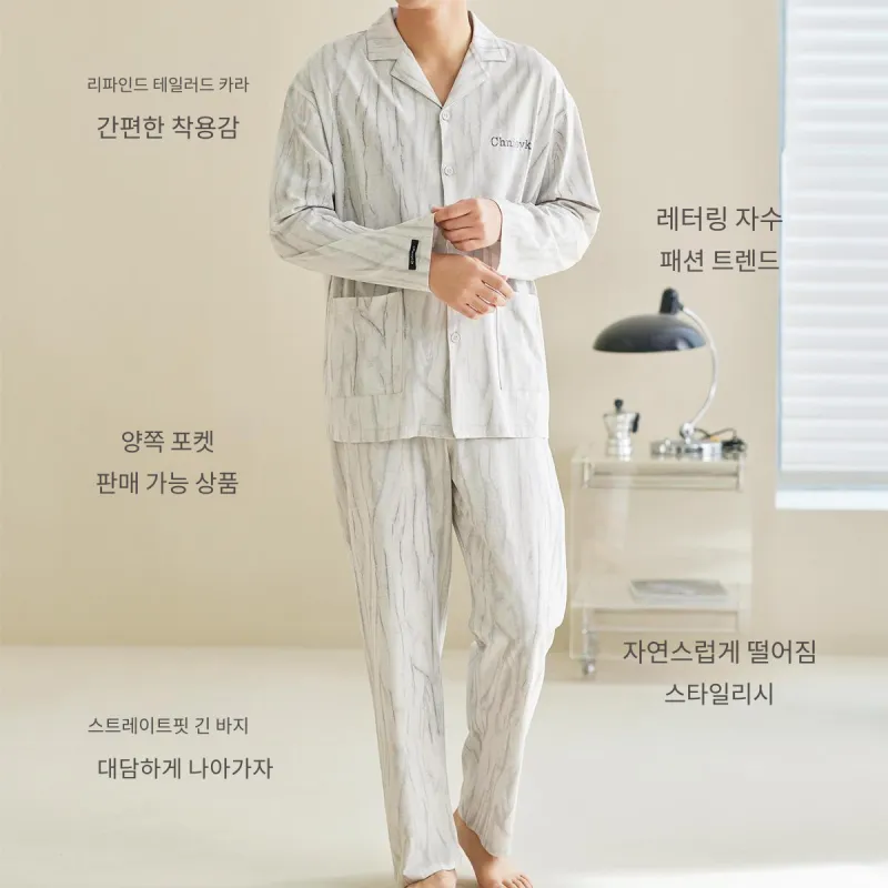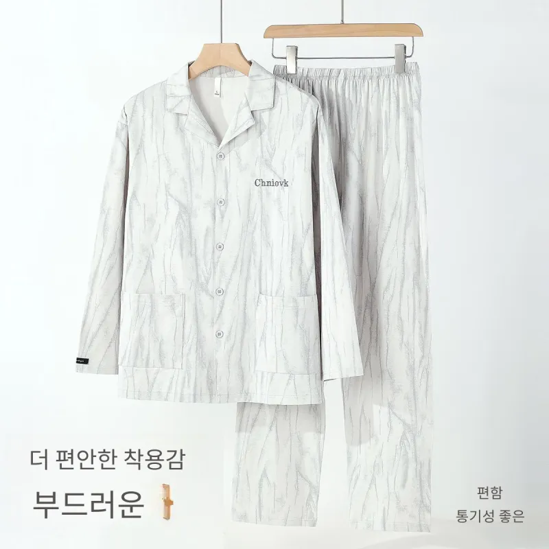 ALDOLA 아이스 그레이 남성 파자마 세트