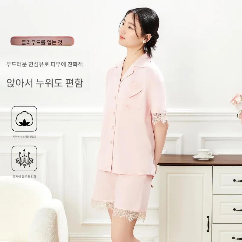 ALDOLA 라이트 핑크 여성 파자마 세트