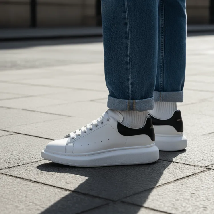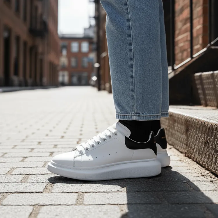 알렉산더 맥퀸 오버사이즈드 스니커즈 화이트 블랙 - POIZON