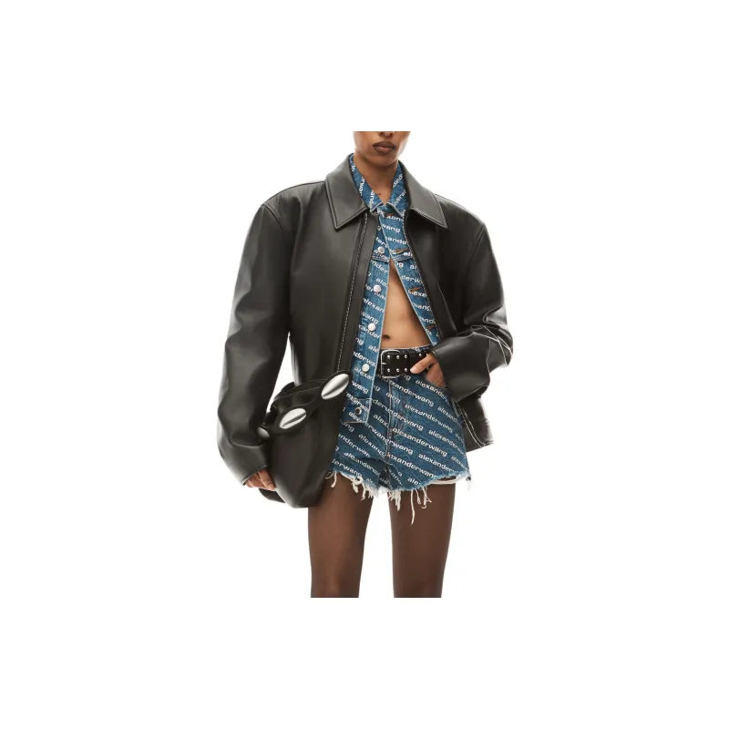 (W) 알렉산더 왕 바이트 로고 쇼츠 딥 블루 데님 - POIZON