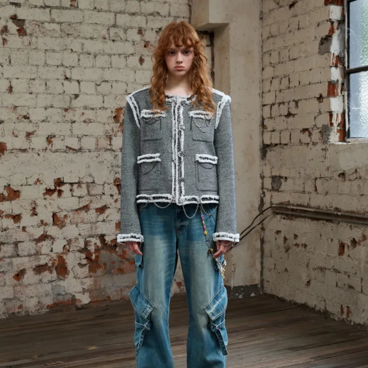 외부 원단: 61% 면, 30% 울, 9% 폴리아미드 안감 원단: 100% 폴리에스터