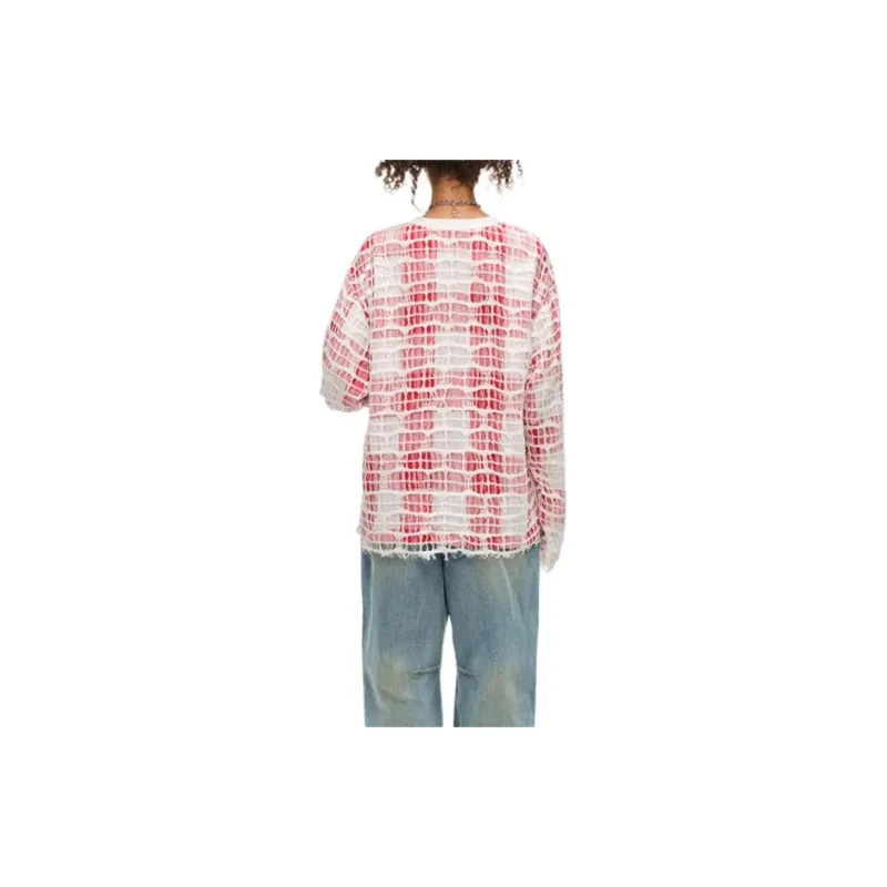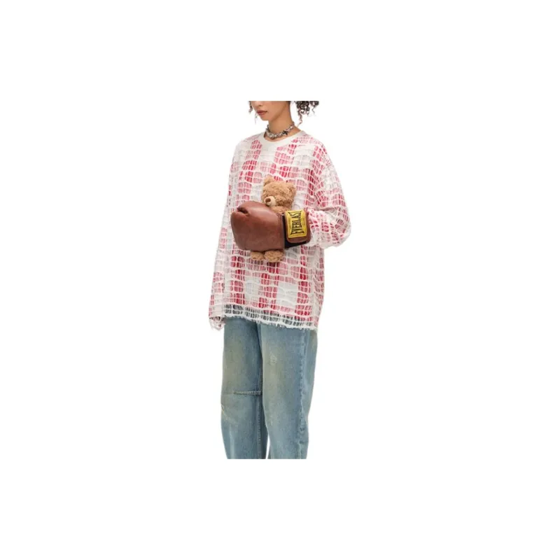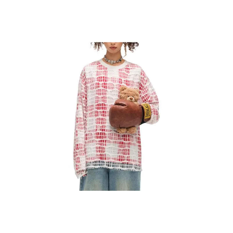 Alexia Sandra 드롭 숄더 소매 티셔츠 남녀공용 레드 화이트 - POIZON
