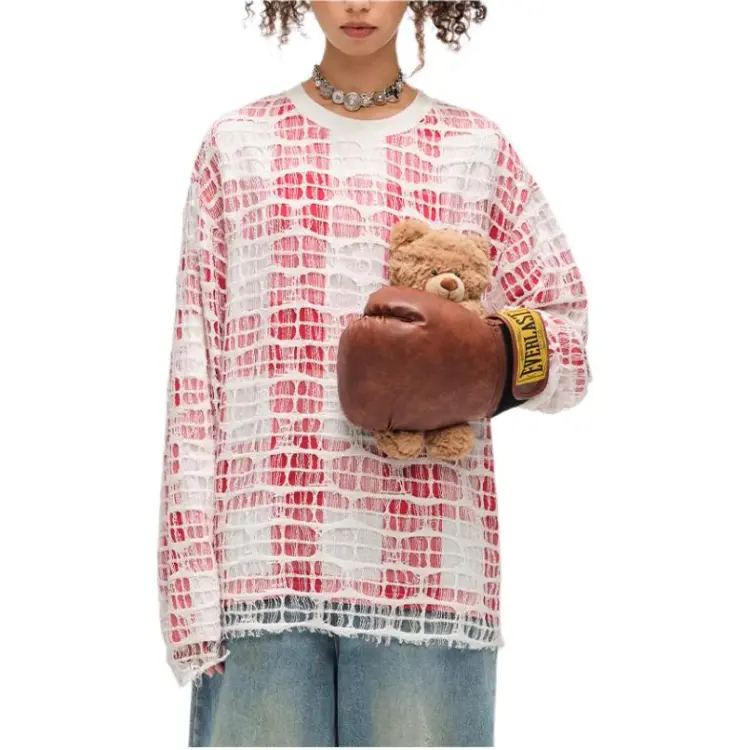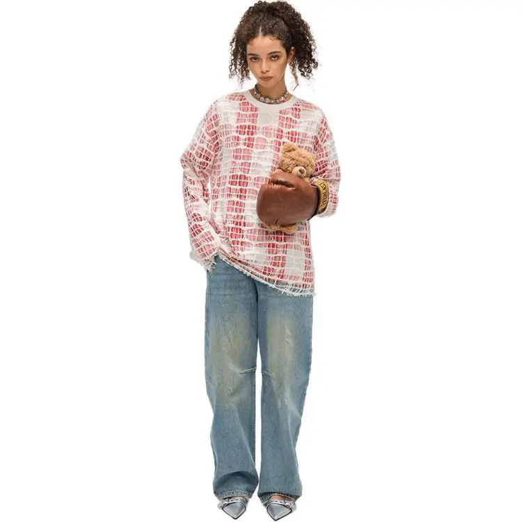 Alexia Sandra 드롭 숄더 소매 티셔츠 남녀공용 레드 화이트